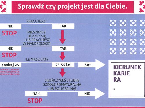 W marcu w kilkudziesięciu miejscowościach Małopolski będzie można spotkać się z doradcą zawodowym i uzyskać szansę na otrzymanie 87% dofinansowania do szkoleń w formie bonów w ramach projektu "Kierunek Kariera", realizowanego przez Wojewódzki Urząd Pracy w Krakowie. Bony i usługi doradztwa zawodowego (Bilans Kariery) są przeznaczone dla osób pracujących (zatrudnionych na umowę o pracę, na podstawie wyboru, mianowania, powołania lub spółdzielczej umowy o pracę – w rozumieniu Kodeksu pracy, a także na umowę zlecenie lub umowę o dzieło; prowadzących wyłącznie jednoosobową działalność gospodarczą i nie zatrudniają pracowników. Skorzystać mogą także rolnicy, którzy nie są osobami bezrobotnymi, opłacają składki w KRUS i poświęcają czas na prowadzenie gospodarstwa rolnego, nawet jeżeli nie zrealizowały żadnej sprzedaży lub usług i nic nie wyprodukowały. Beneficjentami projektu mogą być także obcokrajowcy, którzy posiadają dokument upoważniający ich do pobytu oraz świadczenia pracy na terenie RP), niezależnie od miejsca wykonywania pracy. Czytaj dalej