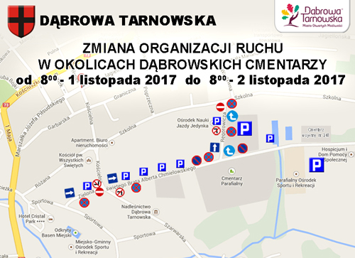 Podobnie jak w latach ubiegłych, w okresie Świąt Wszystkich Świętych, tj. w dniach 1 listopada 2017 r. od godz. 800 do 2 listopada 2017 r. do godz. 800 wprowadzona została zmiana organizacji ruchu w obrębie cmentarza parafialnego w Dąbrowie Tarnowskiej. Nie będzie w tym roku czynnego parkingu na terenie Zakładów Gazownictwa, będzie za to udostępniony parking na terenie Ośrodka Nauki Jazdy "Jedynka". Zachęcamy do zapoznania się z tymi zmianami i nowych zasad organizacji ruch w obrębie dąbrowskich nekropolii oraz stosowanie się do poleceń Policji. Czytaj dalej