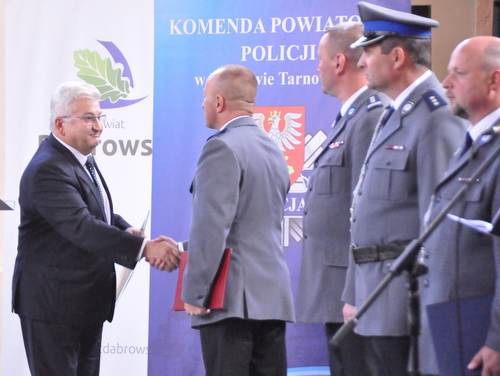 W czwartek 27 lipca br. odbyły się powiatowe obchody Święta Policji przygotowane przez Komendanta Powiatowego Policji w Dąbrowie Tarnowskiej nadkom. Mirosława Stracha. Na miejsce uroczystości wybrano sąsiadujący z Komendą Powiatową Policji Ośrodek Spotkania Kultur mieszczący się w odrestaurowanym kilka lat temu budynku synagogi. Podczas oficjalnego apelu zostały wręczone medale i odznaczenia oraz awanse na wyższe stopnie służbowe dla funkcjonariuszy policji pracujących w powiecie dąbrowskim. Samorząd Gminy Dąbrowy Tarnowska reprezentował Burmistrz Dąbrowy Tarnowskiej Krzysztof Kaczmarski który wręczył na ręce kierownictwa dąbrowskiej policji okolicznościowy list gratulacyjny. Składając życzenia policjantom i pracownikom policji nawiązywał do dobrej i owocnej współpracy samorządu z KPP w Dąbrowie Tarnowskiej. Ponadto, gospodarz miasta wręczył dwie nagrody dzielnicowym, którzy wykazali się dużą aktywnością we współpracy z samorządem Gminy Dąbrowa Tarnowska. Wyróżniono mł. asp. Marcina Reicherta i mł. asp. Marcina Cygana. Czytaj dalej