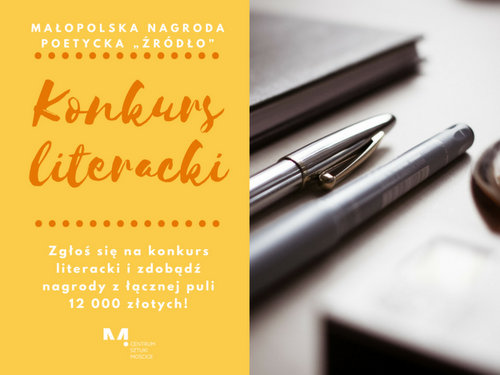 Piszesz poezję? Jesteś debiutantem lub od jakiegoś czasu próbujesz swoich sił w pisaniu wierszy? Zgłoś się na konkurs literacki i zdobądź nagrody z łącznej puli 12 000 złotych! Konkurs literacki pn. Małopolska Nagroda Poetycka "Źródło" ma charakter ogólnopolski i skierowany jest do poetów jeszcze nieznanych bądź mało znanych oraz debiutantów. Idea konkursu ma związek z ważnymi pytaniami: kim jesteśmy, dokąd idziemy, jak siebie jako Polaków oceniamy, czego w życiu powinniśmy się mocno trzymać, z jakich źródeł wynika nasz system wartości, co jest w nim istotne i ważne. Topos domu rodzinnego, motyw dzieciństwa, prawda o współczesnych dramatach ludzkich, temat ziemi, ekologii, etos pracy, patriotyzm, polskość a uniwersalność, odkrywanie siebie samego dla siebie - to tylko niektóre tematy do podjęcia i przetransponowania na język poezji. Czytaj dalej