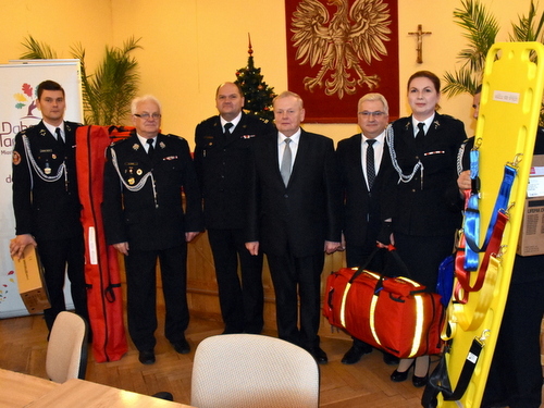 W czwartek 11 stycznia br. w Urzędzie Miejskim w Dąbrowie Tarnowskiej odbyło się uroczyste przekazanie jednostkom Ochotniczych Straży Pożarnych sprzętu ratującego zdrowie i życie ludzkie. Zakup tego sprzętu był możliwy dzięki dofinansowaniu z Funduszu Pomocy Pokrzywdzonym oraz Pomocy Postpenitencjarnej – Fundusz Sprawiedliwości – którego dysponentem jest Minister Sprawiedliwości. Łączna wartość przekazanego sprzętu, w skład którego weszły: zestaw ratownictwa medycznego PSP R1 z deką ortopedyczną, szynami Kramera i opatrunkami hydrożelowymi, defibrylator Lifepack CR Plus i 6 toreb ratownictwa medycznego OSP R1 wynosiła 17.450,00 zł. Czytaj dalej