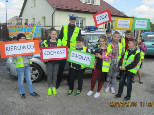 W ubiegły piątek 29 kwietnia br. w miejscowości Żelazówka na drodze krajowej nr 73 młodzież tutejszej Szkoły Podstawowej wraz z policjantami dąbrowskiej drogówki uczestniczyła w akcji ,,Kierowco, kochasz? Zwolnij!". W tym dniu kierowcy poruszający się tą drogą byli zatrzymywani do kontroli przez nietypowe patrole. Funkcjonariuszy Referatu Ruchu Drogowego st. sierż. Marcina Chumrę i st. sierż. Adriana Wiatra podczas pełnienia służby wsparły dzieci Szkoły Podstawowej w Żelazówce. Kierowcy zatrzymani do kontroli otrzymywali tzw. LIST DO KIEROWCY, napisany wcześniej przez uczniów z klas IV-VI oraz czerwone lub czarne serduszko przygotowane przez uczniów z klas I-III. Większość z kierowców otrzymała czerwone serduszka, gdyż jechali zgodnie z obowiązującymi przepisami.