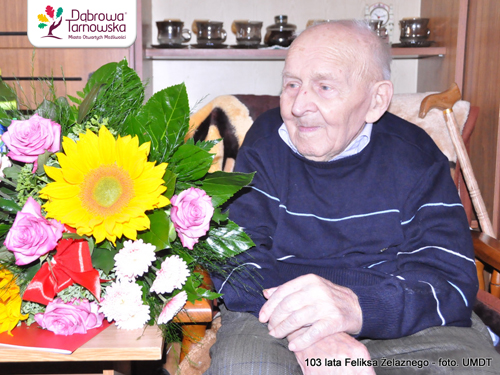 W piątek 10 lipca 103. urodziny obchodził mieszkaniec Dąbrowy Tarnowskiej - Pan Feliks Żelazny. Dostojnego Jubilata z okolicznościową wizytą odwiedziła delegacja Urzędu Miejskiego w Dąbrowie Tarnowskiej - Krzysztof Kaczmarski Burmistrz Dąbrowy Tarnowskiej, Krzysztof Orwat - Kierownik Referatu Promocji, Kultury i Informatyzacji oraz Magdalena Pinas Kierownik Urzędu Stanu Cywilnego. Burmistrz w imieniu samorządu gminnego przekazał na ręce Jubilata najserdeczniejsze życzenia urodzinowe, kwiaty oraz upominek. Nie zabrakło też urodzinowego tortu oraz toastu za zdrowie Jubilata. Feliks mimo zaawansowanego wieku cieszy się w miarę dobrym zdrowiem, narzeka jedynie na słuch oraz ograniczoną sprawność fizyczną. Dostojny Jubilat zamieszkuje z najbliższą rodziną, która na co dzień zapewnia troskliwą i serdeczną opiekę. Czytaj dalej