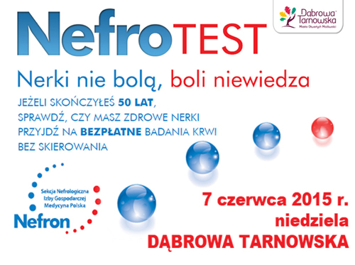 Już 7 czerwca (w niedzielę) 2015 roku, w Centrum Dializ Fresenius w Dąbrowie Tarnowskiej (na terenie szpitala) będzie można wykonać bezpłatne, proste badania krwi pod kątem chorób nerek. By wziąć udział w akcji trzeba mieć ukończone 50 lat i wcześniej się zarejestrować. Ilość miejsc na badania jest ograniczona i wynosi 400. Akcja w Dąbrowie Tarnowskiej jest częścią ogólnopolskiej kampanii NEFROTEST organizowanej przez Nefron Sekcję Nefrologiczną Izby Gospodarczej Medycyna Polska wraz z lokalnym partnerem, Centrum Dializ Fresenius w Dąbrowie Tarnowskiej. Czytaj dalej