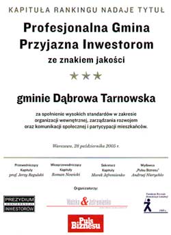 28 października 2005 r. w Warszawie Kapituła Konkursu „Profesjonalna Gmina Przyjazna Inwestorom” ogłosiła wyniki IV edycji tego konkursu..