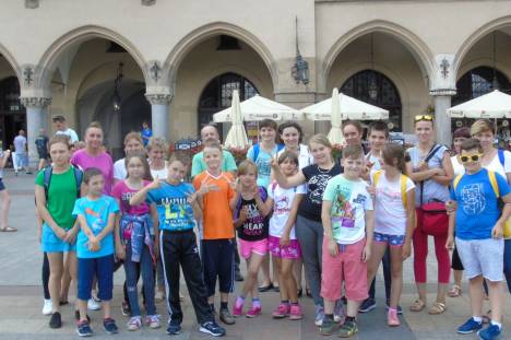 26.07.2018 wychowankowie placówki wsparcia dziennego „Jutrzenka” wraz z rodzicami uczestniczyli w jednodniowym wyjeździe integracyjnym do Krakowa. Dzień rozpoczął się od kontroli autobusu przez policjantów z KPP w Dąbrowie Tarnowskiej. Gdy panowie policjanci wystawili protokół stwierdzający pełną sprawność techniczną pojazdu wyruszyliśmy w drogę. W Krakowie czekała na nas już nasza Pani przewodnik Dominika Steclik, z którą zaczęliśmy nasze zwiedzanie od Starego Miasta- spaceru drogą królewską. Pani Dominika opowiadała nam historię murów byłego zamku królewskiego w Krakowie i legendy z nim związane. Powoli zmierzaliśmy naszym spacerem aż do kościoła Mariackiego. Oglądając kościół i jego architekturę słuchaliśmy legend o dwóch budowniczych wierz i gołębiach w akompaniamencie hejnału mariackiego, który rozbrzmiał na krakowskim rynku o godzinie jedenastej. Kolejnym etapem było przejście na Wawel- byłą siedzibę królów polskich, gdzie oglądaliśmy piękną architekturę byłego zamku i trumny dawnych władców naszego kraju aby następnie zobaczyć wzgórze i jamę słynnego smoka wawelskiego, który po dziś dzień zieje ogniem. Pani Dominika opowiadała nam legendę o dzielnym szewczyku Dratewce, który pokonał strasznego smoka.