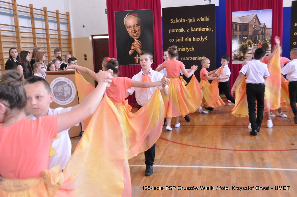 Symbolem tego połączenia były białe kamienie złożone przez uczniów przy obrazie będącym wizerunkiem Szkoły. Wzniosłości dodała jej też piękna oprawa muzyczna w wykonaniu kwartetu skrzypcowego oraz chóru szkolnego. Akcentem tanecznym zaznaczyły się, wykonane przez uczniów klasy IV, oberek i walc. Na zakończenie uroczystości, goście oraz wszyscy jej uczestnicy mogli obejrzeć ekspozycje prac skupiających się wokół historii Szkoły, jej działalności i osiągnięć oraz oddających koloryt Gruszowa Wielkiego.