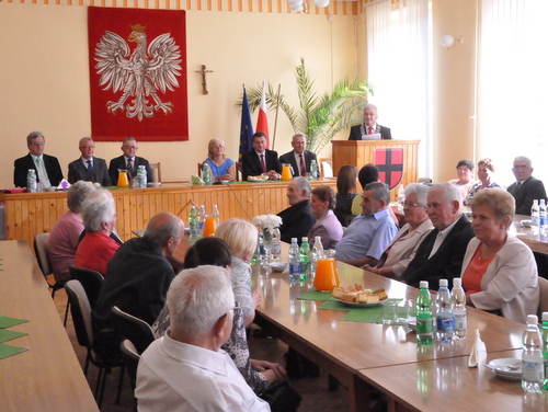 Uroczystość uświetnił zespół  “Wiarusy”, który witał Jubilatów już w holu Urzędu, a następnie pięknie grał Dostojnym Jubilatom i wszystkim zebranym gościom w sali głównej. Wspólnie odśpiewano tradycyjne "Sto lat". W imieniu własnym i Jubilatów głos zabrała Pani Lucyna Puciłowska, która podziękowała władzom gminy za pamięć i organizację Jubileuszu. Słowami okolicznościowego wiersza przedstawiła kilka wskazówek jak przeżyć 50 lat w jednym związku małżeńskim i jak mimo wielu przeciwności losu, dotykających każdego człowieka doczekać tak wielkiego Jubileuszu. Na zakończenie na upamiętnienie tego wyjątkowego spotkania wykonano pamiątkowe zdjęcia.