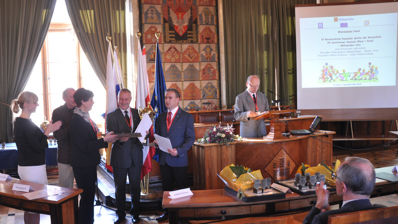 Po raz kolejny, ze szczególnym uznaniem wypowiadano się o ciągłym inwestowaniu naszego samorządu w obiekty sportowe, skutkującym oddaniem do użytku tylko w bieżącym roku przyszkolnych kompleksów sportowych w Gruszowie Wielkim i Smęgorzowie oraz siłowni zewnętrznych i wspaniałego skateparku w Dąbrowie Tarnowskiej. Specjalne wyróżnienie przypadło także naszej gminie za historyczne, pierwsze zwycięstwo w ogólnopolskiej klasyfikacji generalnej VI Europejskiego  Tygodnia Sportu. Przedstawiciele dąbrowskiego samorządu otrzymali okazały puchar dla Laureata XX edycji Sportowego Turnieju Miast i Gmin 2014 na szczeblu Województwa Małopolskiego. Dodatkowo, w uznaniu bezprecedensowego inwestowania i zaangażowania w sport i rekreację pamiątkową statuetkę i list gratulacyjny Marszałka Województwa Małopolskiego Marka Sowy, za zwycięstwo w klasyfikacji wojewódzkiej i ogólnopolskiej Tygodnia Sportu przyznano Burmistrzowi Dąbrowy Tarnowskiej Stanisławowi Początkowi. Analogiczne wyróżnienie trafiło też do gminnego koordynatora akcji - Witolda Reczka.