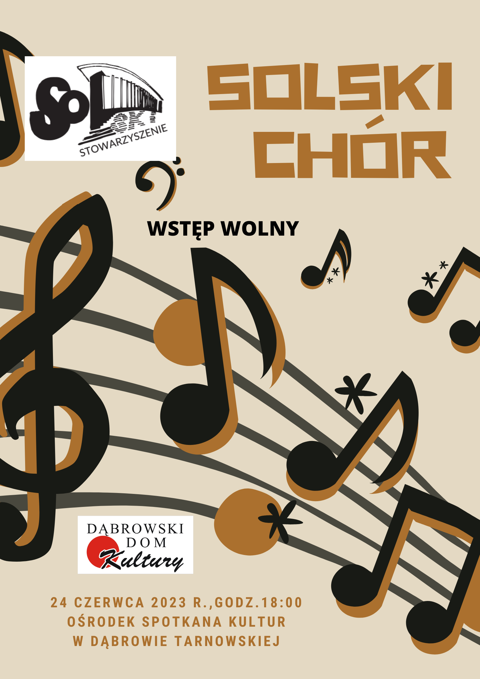 Sobotni wieczór należeć będzie do miłośników muzyki chóralnej. 24 czerwca o godz.18:00 w urokliwym wnętrzu dawnej Sali Modłów dąbrowskiej synagogi wystąpi znany i lubiany chór SOLski z Tarnowa. Chór przygotowuje na tę okazję specjalny repertuar, dopasowany stylistycznie i tematycznie do niezwykłego miejsca, jakim jest dla muzyków i melomanów Ośrodek Spotkania Kultur.