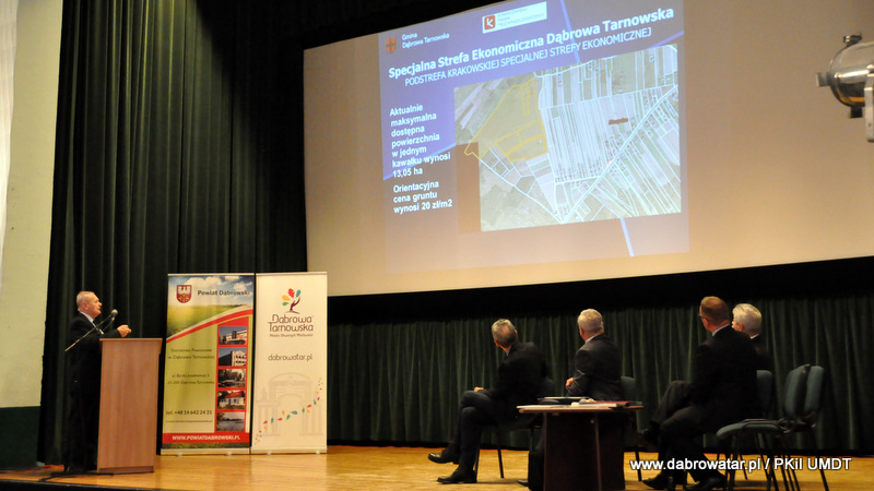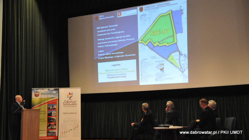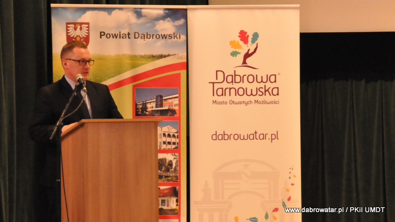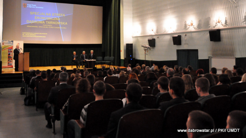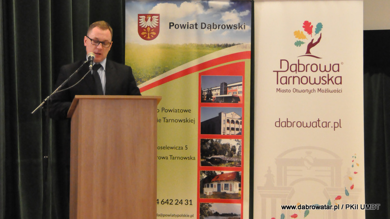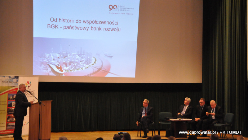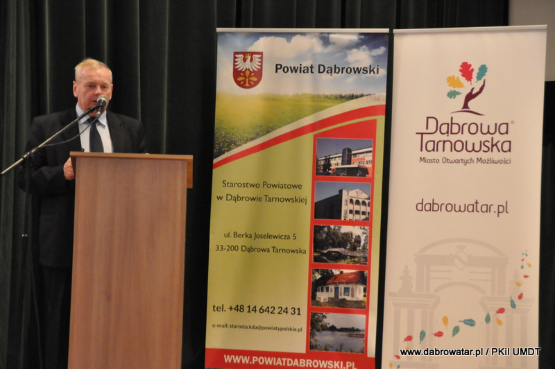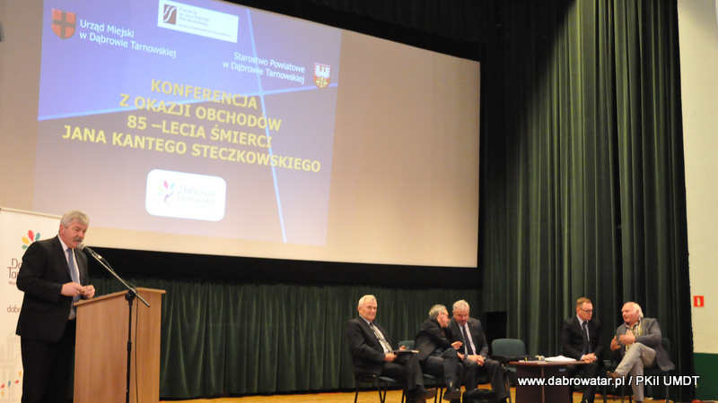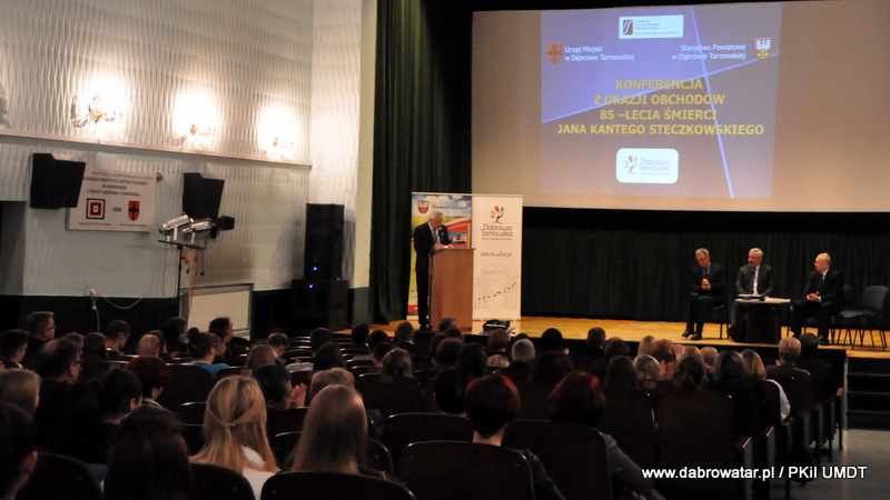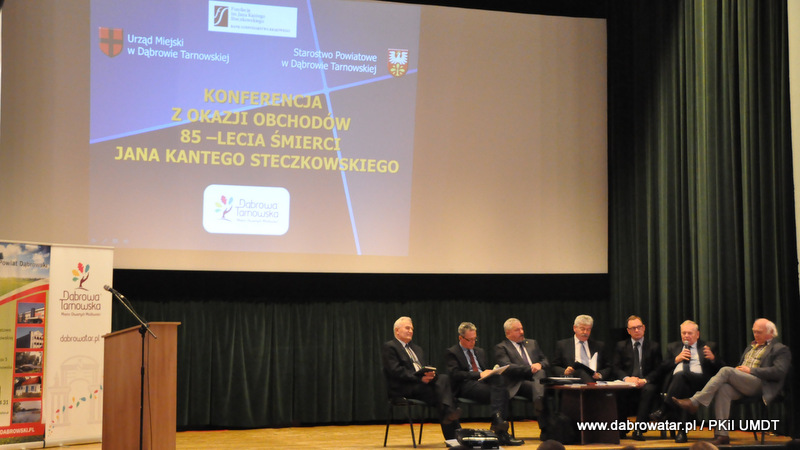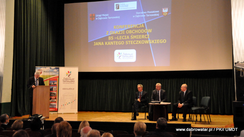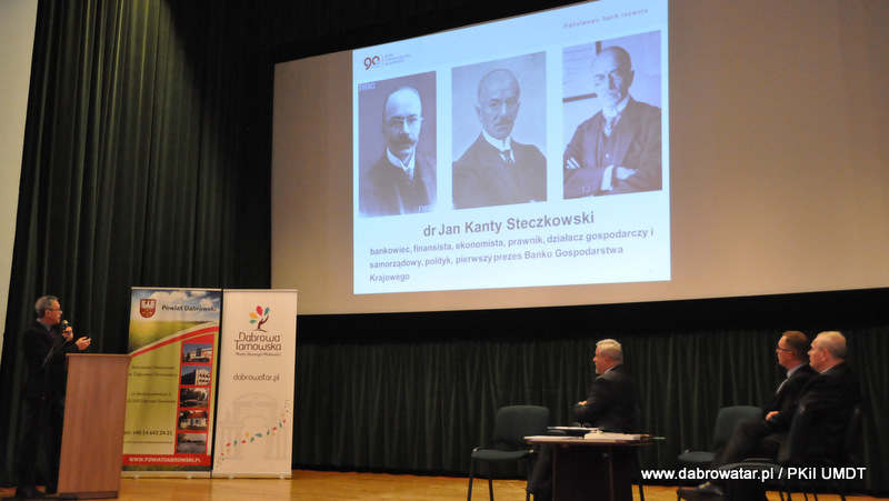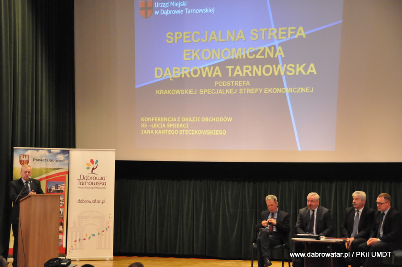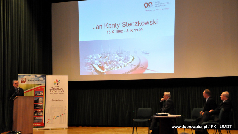 Starosta Tadeusz Kwiatkowski na wstępie przywitał wszystkich przybyłych na konferencje, a także pokrótce przedstawił wszystkim sylwetkę Jana Kantego Steczkowskiego urodzonego w Dąbrowie Tarnowskiej – ekonomisty, prawnika, polityka, ministra skarbu i pierwszego prezesa Banku Gospodarstwa Krajowego. Następnie głos zabrał Burmistrz Stanisław Początek, który przedstawił prezentację nt. Specjalnej Strefy Ekonomicznej Dąbrowy Tarnowskiej - Dąbrowa Tarnowska jako miejsce przyjazne inwestycjom i gotowe na nowe pomysły prorozwojowe. Tomasz Latała w imieniu Ministra Władysława Kosiniaka-Kamysza podziękował Staroście oraz Burmistrzowi za zorganizowanie tej konferencji, dzięki której społeczności lokalnej przybliżona została postać wielkiego człowieka wywodzącego się z powiatu dąbrowskiego i jego zasług. Mateusz Wierzbicki z Banku Gospodarstwa Krajowego w swojej prezentacji przybliżył postać Jana Kantego Steczkowskiego, a Dyrektor Oddziału Banku Gospodarstwa Krajowego w Krakowie Stanisław Wolnik zapoznał uczestników spotkania z Jego bogatym dziedzictwem. Na zakończenie konferencji odbyła się dyskusja panelowa z udziałem przedsiębiorców Pana Stanisława Tracza z ZPOiW z Dąbrowy Tarnowskiej oraz Józefa Gondka z firmy Tarsmak z Radgoszczy. Podczas dyskusji zostało poruszone pojęcie patriotyzmu gospodarczego, jego współczesna rola, szanse oraz problemy. Samorządowcy, jak również zaproszeni goście zachęcali słuchaczy do dbania o lokalną gospodarkę i wspieranie w rozwoju swoich przedsiębiorstw.