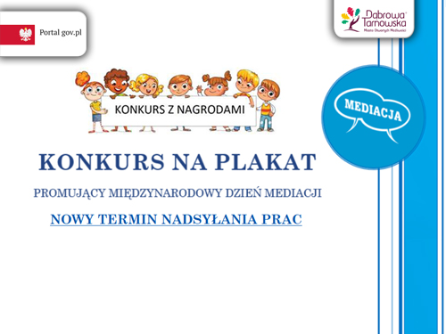 Termin nadsyłania prac w konkursie na plakat promujący Międzynarodowy Dzień Mediacji został przedłużony. Na zgłoszenia czekamy do 6 września! To spełnienie próśb wielu uczniów zainteresowanych udziałem w konkursie. Aby uświetnić obchody Międzynarodowego Dnia Mediacji i Tygodnia Mediacji, przypadające w październiku, Ministerstwo Sprawiedliwości zorganizowało konkurs na plakat promujący mediację - alternatywny do procesu sądowego sposób rozwiązywania sporów. Konkurs przeznaczony jest dla uczniów szkół podstawowych oraz ponadpodstawowych. Ma pomóc w upowszechnieniu wiedzy na temat mediacji i zachęcić do korzystania z niej. Zadanie konkursowe polega na stworzeniu plakatu promującego mediację – jedną z metod polubownego rozwiązywania sporu.