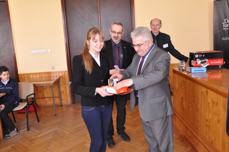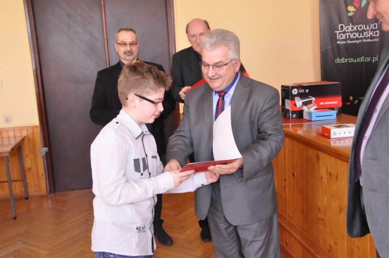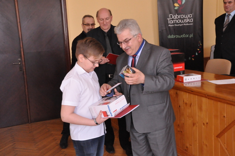 Do eliminacji powiatowych, które odbędą się w dniu 26 marca 2015 r. o godz. 10.00 w Centrum Polonii w Brniu zakwalifikowano po dwóch zawodników w kategorii szkół podstawowych i gimnazjów. Nagrody dla zwycięzców, w postaci tabletów, drukarek oraz zestawów słuchawkowych, ufundował i wręczył Burmistrz Dąbrowy Tarnowskiej Krzysztof Kaczmarski. Podsumowując konkurs Burmistrz, podziękował uczestnikom i ich opiekunom za udział i życzył zwycięzcom godnego reprezentowania naszej gminy w eliminacjach powiatowych.