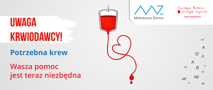 Jak co roku w okresie letnim, pojawiają się w mediach informacje, że zapasy krwi bardzo się zmniejszyły. Okres wakacji to dla krwiodawstwa bardzo trudny czas. Z jednej strony zużycie krwi jest większe, bo dochodzi do większej ilości wypadków, a z drugiej z powodu wakacyjnych wyjazdów krwiodawców trudniej przeprowadzać jest akcję krwiodawstwa. Na braki w stanach magazynowych Centrów Krwiodawstwa i Krwiolecznictwa (CKiK) wpływ ma także sytuacja związana z pandemią koronawirusa. Dlatego  banki krwi, Regionalne Centra Krwiodawstwa i Krwiolecznictwa (RCKiK) oraz Ministerstwo Zdrowia zwracają się honorowych dawców krwi oraz wszystkich zdrowych osób, które w ostatnim czasie nie podróżowały do innych krajów i nie miały kontaktu z osobą zakażoną wirusem lub objętą kwarantanną, o oddanie krwi w jednym z centrów krwiodawstwa w Polsce, niezależnie od miejsca zamieszkania.