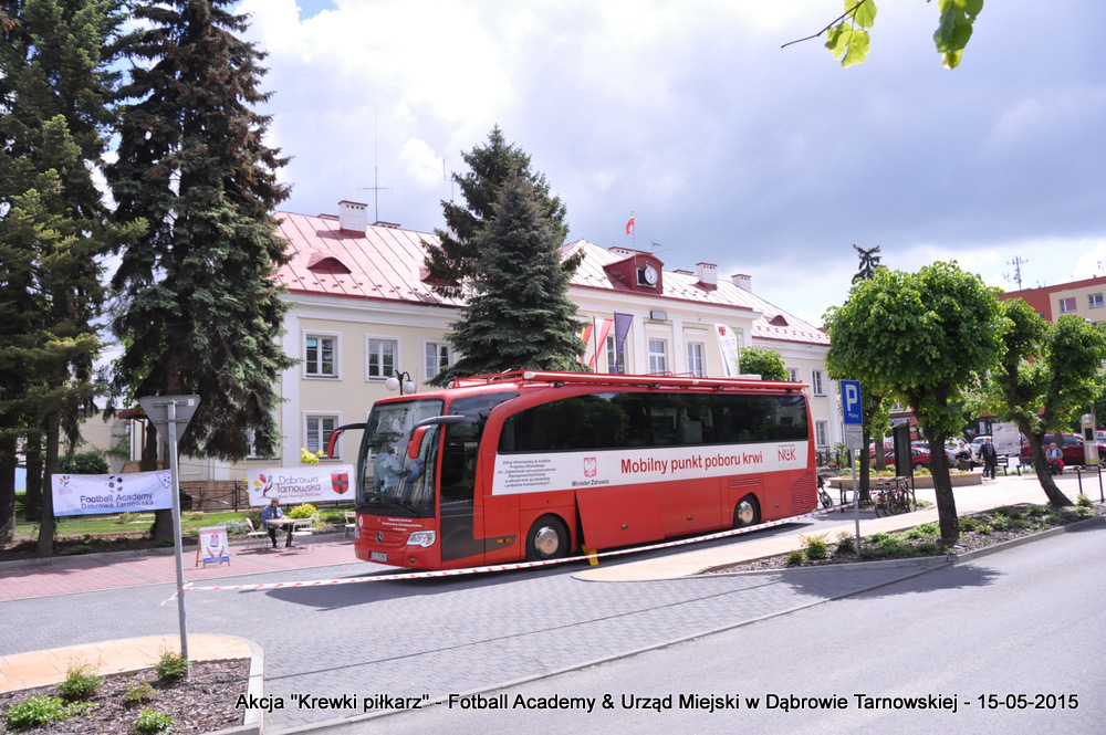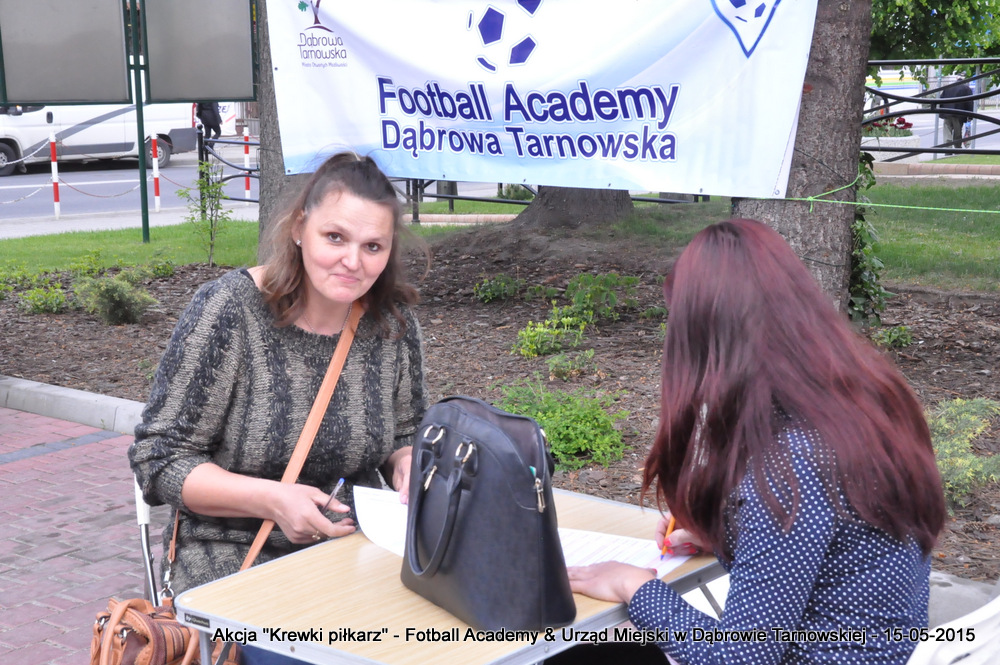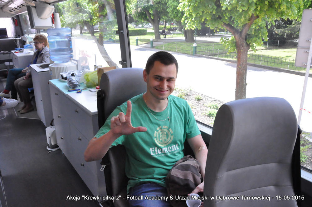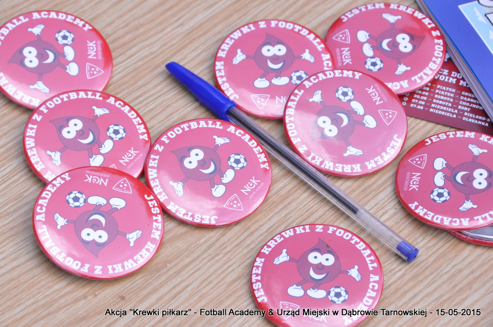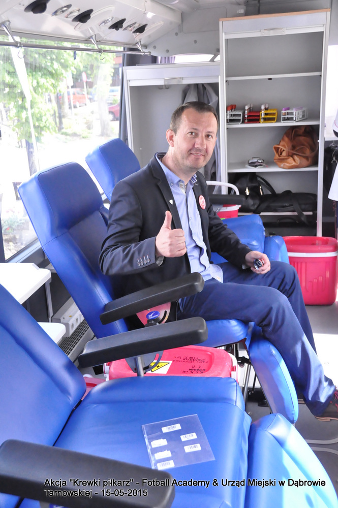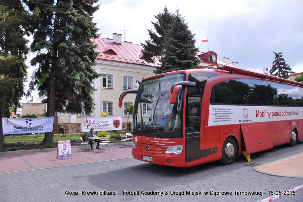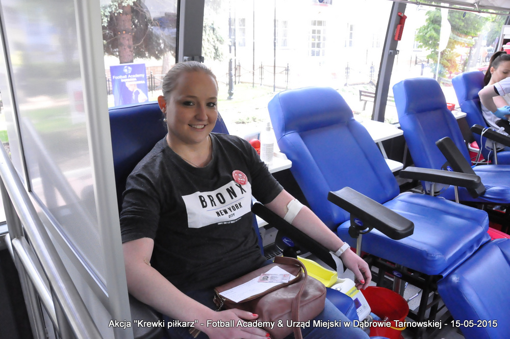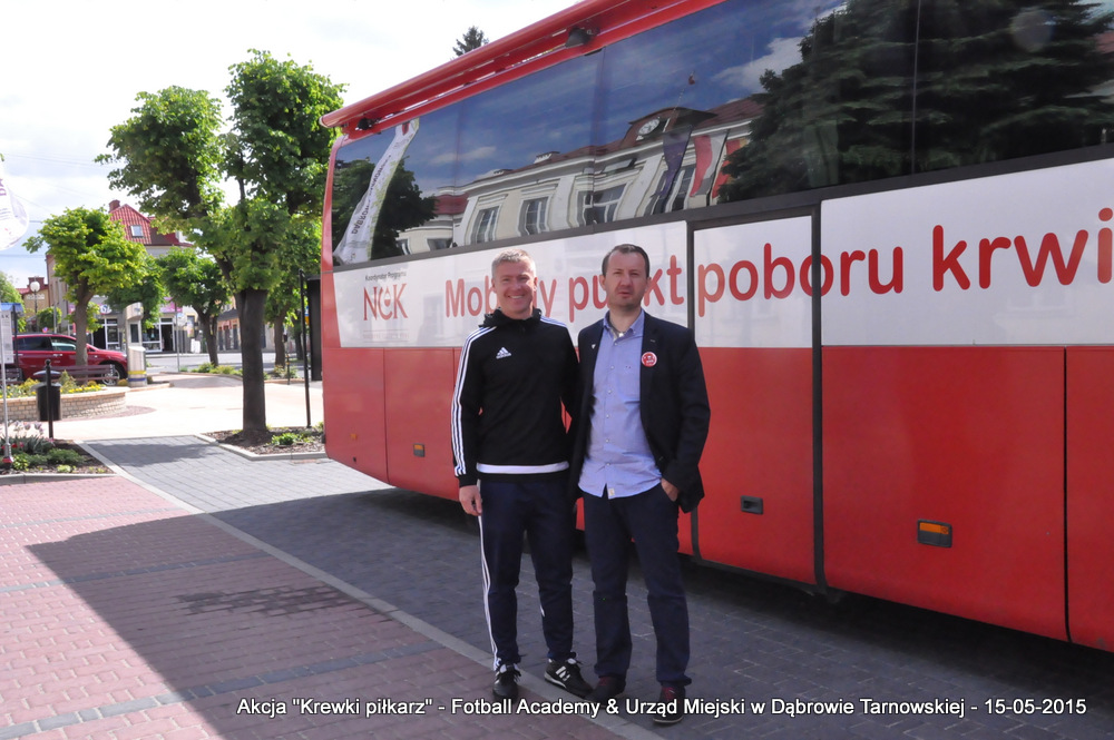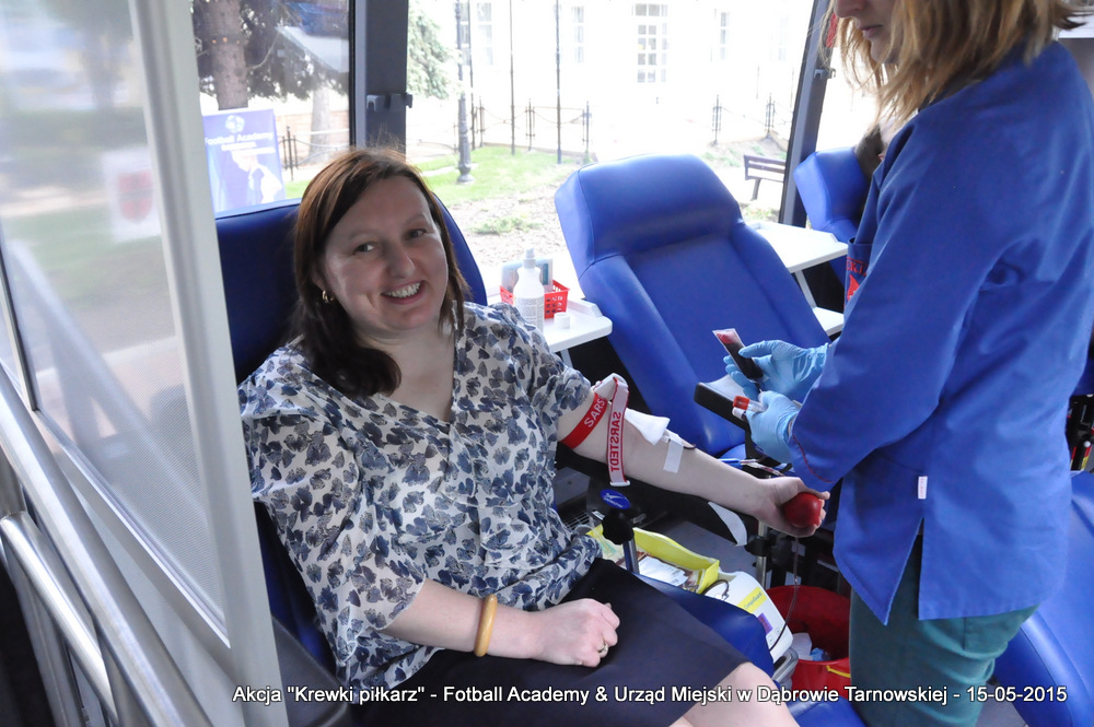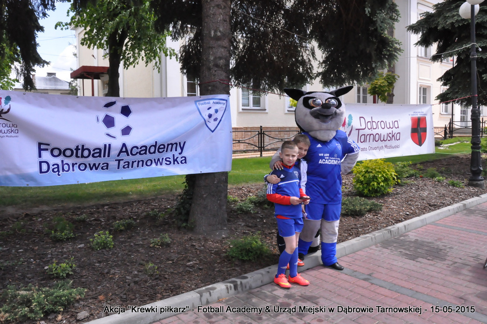 15 maja 2015 odbyła się akcja oddawania krwi w ramach II  Ogólnopolskiej Edycji Projektu „KREWKI PIŁKARZ”. Organizatorem była Szkółka Piłkarska FOOTBALL ACADEMY i Urząd Miejski w Dąbrowie Tarnowskiej. Honorowym patronatem akcję zbiórki krwi objął Burmistrz Dąbrowy Tarnowskiej. W piątkowy słoneczny dzień zgłosiło się  blisko 50 chętnych osób do oddania krwi, jednak szczegółowe badania przeprowadzone przez Panią Doktor (Rygorystyczne wymogi zdrowotne) spowodowały, że 18 osób mogło oddać krew. Łącznie udało się zebrać ponad 8 litrów krwi – to duża i bezcenna ilość. Chyba nie ma nic bardziej satysfakcjonującego niż oddać cząstkę siebie, by uratować zdrowie i życie drugiej osoby. Dlatego tak cieszymy się z każdej zebranej jednostki krwi – każda z nich oznacza bowiem, że właśnie pomogliśmy ocalić jakiegoś konkretnego człowieka – czyjegoś ojca, czyjąś siostrę, czyjeś dziecko. Dziękujemy każdemu, kto przyłączył się do naszej akcji, oferując ten bezcenny dar serca.