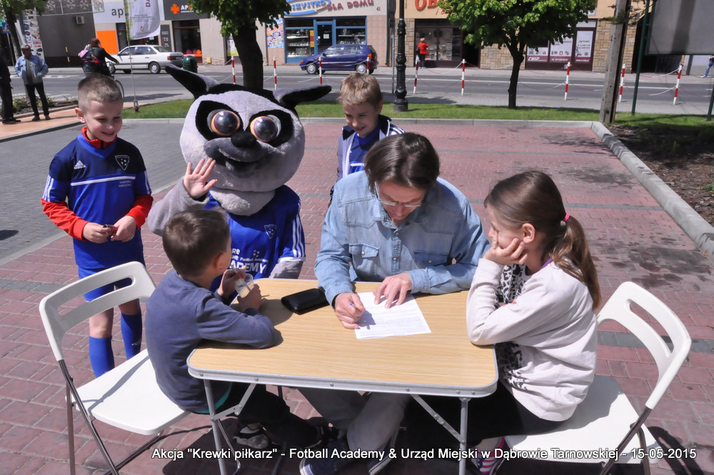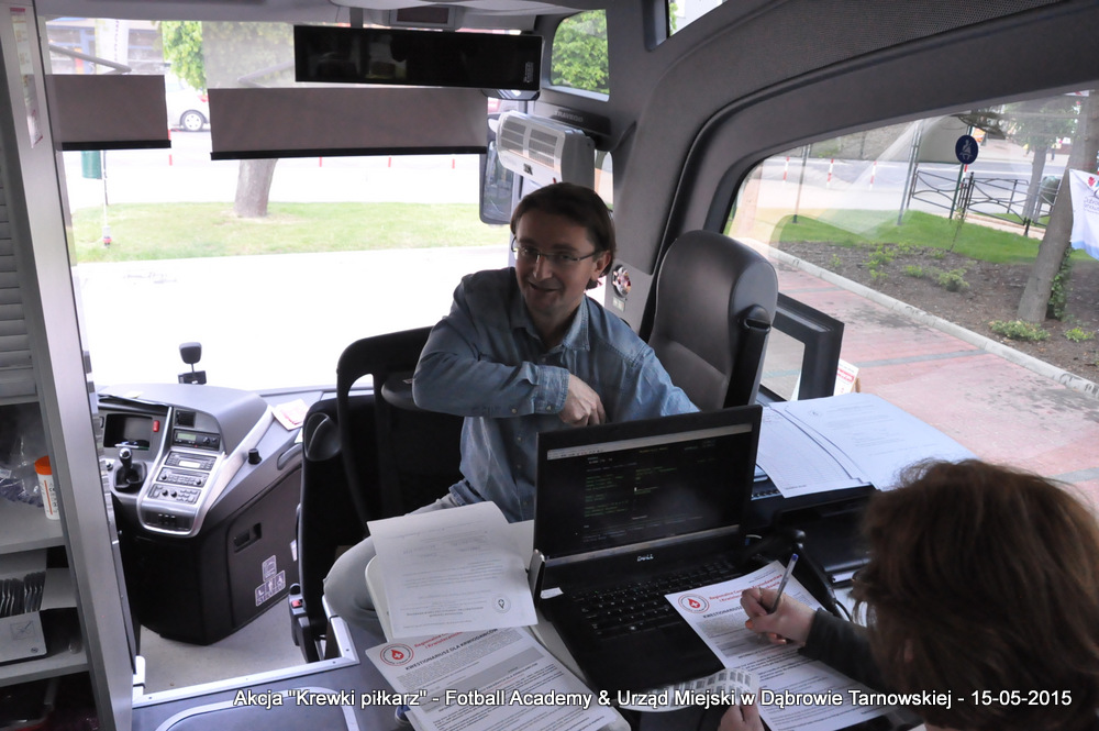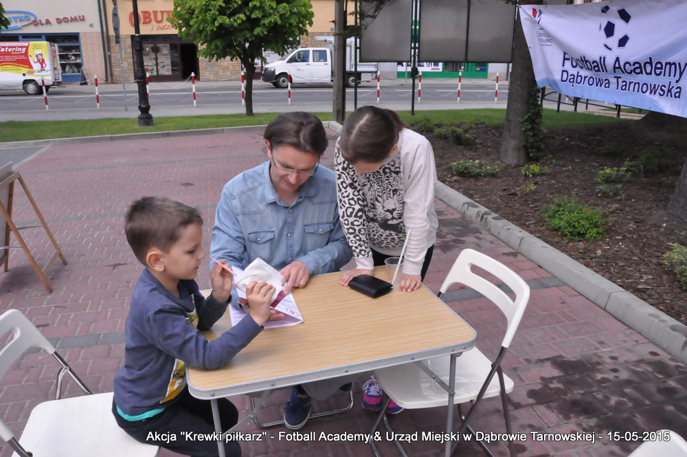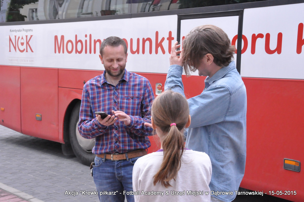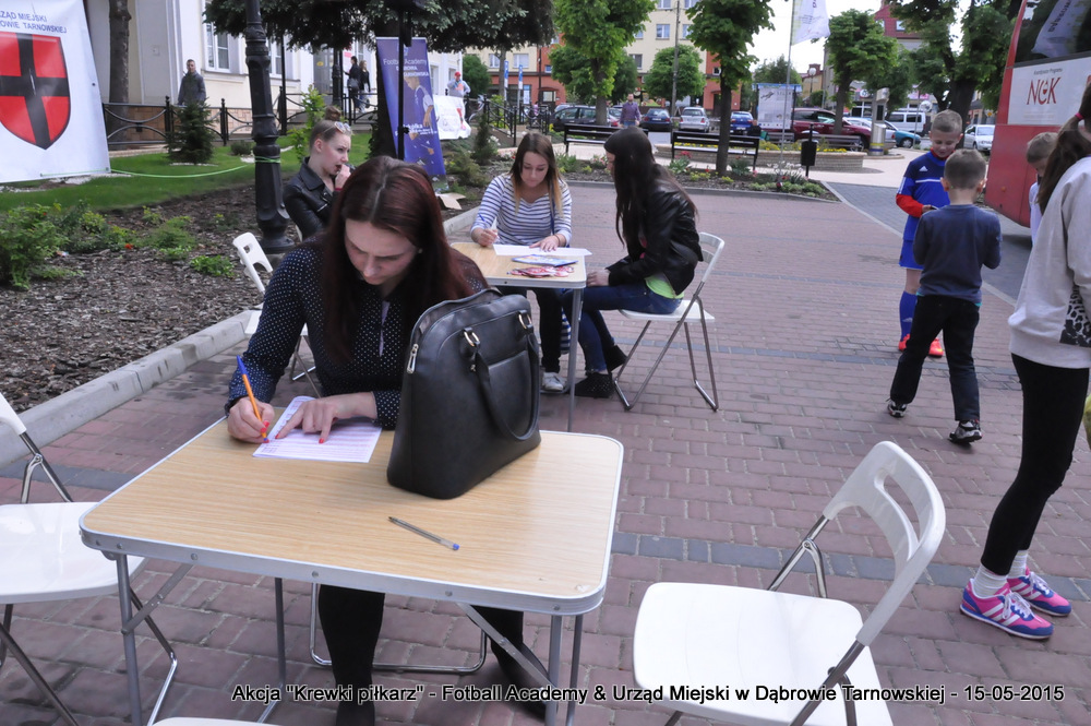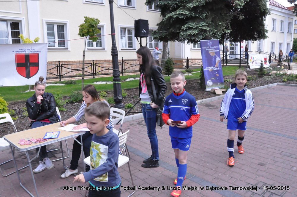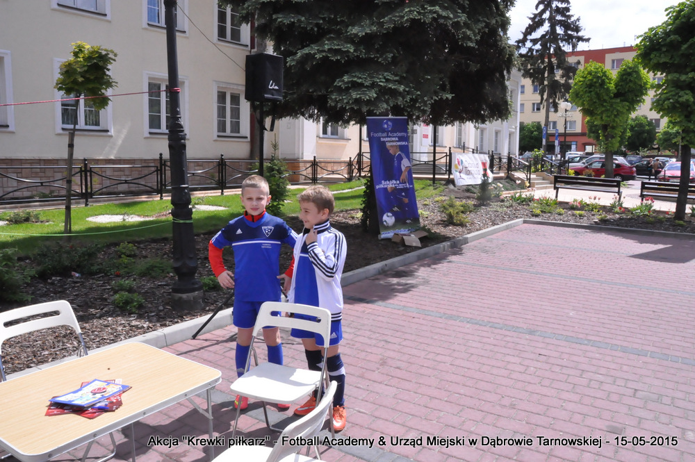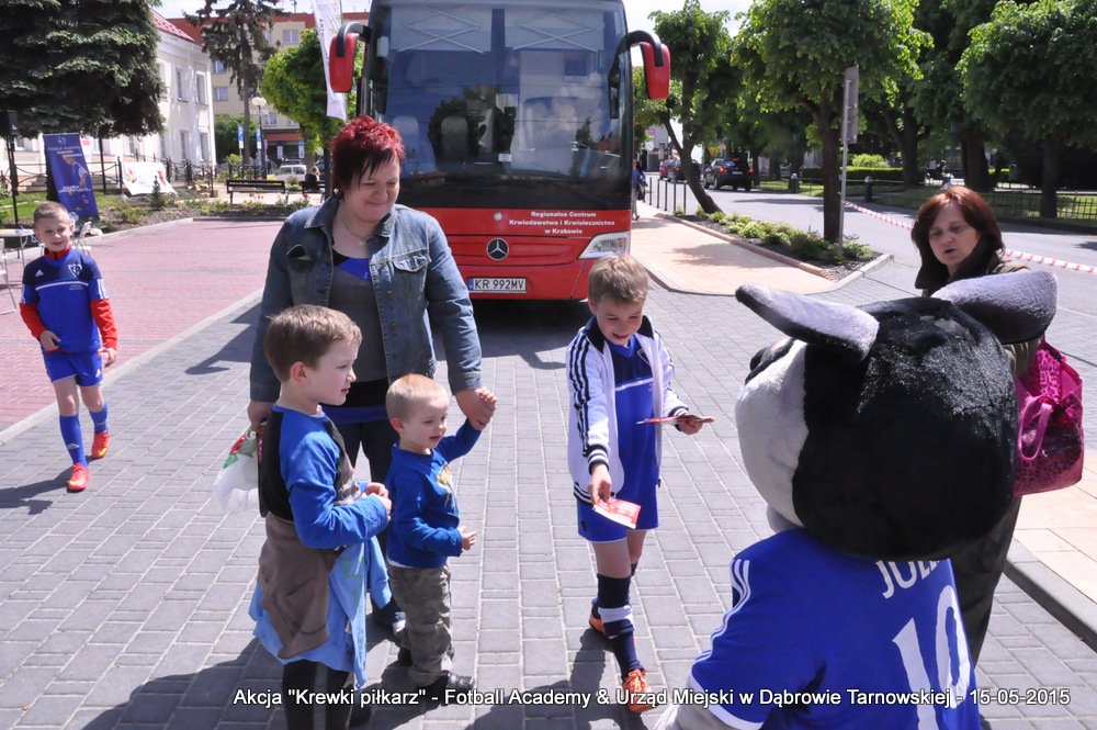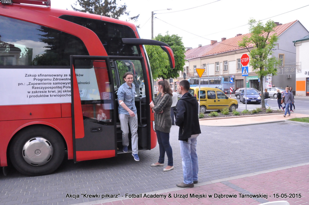 15 maja 2015 odbyła się akcja oddawania krwi w ramach II  Ogólnopolskiej Edycji Projektu „KREWKI PIŁKARZ”. Organizatorem była Szkółka Piłkarska FOOTBALL ACADEMY i Urząd Miejski w Dąbrowie Tarnowskiej. Honorowym patronatem akcję zbiórki krwi objął Burmistrz Dąbrowy Tarnowskiej. W piątkowy słoneczny dzień zgłosiło się  blisko 50 chętnych osób do oddania krwi, jednak szczegółowe badania przeprowadzone przez Panią Doktor (Rygorystyczne wymogi zdrowotne) spowodowały, że 18 osób mogło oddać krew. Łącznie udało się zebrać ponad 8 litrów krwi – to duża i bezcenna ilość. Chyba nie ma nic bardziej satysfakcjonującego niż oddać cząstkę siebie, by uratować zdrowie i życie drugiej osoby. Dlatego tak cieszymy się z każdej zebranej jednostki krwi – każda z nich oznacza bowiem, że właśnie pomogliśmy ocalić jakiegoś konkretnego człowieka – czyjegoś ojca, czyjąś siostrę, czyjeś dziecko. Dziękujemy każdemu, kto przyłączył się do naszej akcji, oferując ten bezcenny dar serca.
