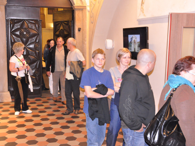 Tej nocy nie zabrakło osób, które już wcześniej bywały w progach odnowionej synagogi, ale po raz kolejny chciały poczuć jej urok, a także zobaczyć tajemnicze zakamarki, na co dzień niedostępne dla zwiedzających. Większość zwiedzających stanowili jednak ci, którzy po raz pierwszy gościli w tym niezwykłym miejscu, gdzie spotykają się kultury Powiśla Dąbrowskiego z przeszłości i teraźniejszości: kultura żydowska, kultura chrześcijańska, kultura świecka oraz kultura ludowa i mieszczańska. Spora część uczestników Nocy Muzeów przybyła spoza Dąbrowy Tarnowskiej. Specjalnie dla nich dąbrowski punkt Małopolskiego Systemu Informacji Turystycznej przygotował szereg ulotek i folderów zachęcających do zwiedzania Małopolski. Rozdawano także archiwalne egzemplarze czasopisma „Powiśle Dąbrowskie” zawierające relacje z remontu synagogi i uroczystego otwarcia jej jako Ośrodka Spotkania Kultur. W trakcie dąbrowskiej Nocy Muzeów można było podejrzeć aktorów Teatru „Nie Teraz” przygotowujących się do spektaklu „Dzień Gniewu autorstwa Romana Brandstettera, który odbędzie się w Ośrodku Spotkania Kultur 30 czerwca br. Noc Muzeów zdarza się tylko raz w roku, ale Ośrodek Spotkania Kultur można zwiedzać codziennie z wyjątkiem poniedziałków i dni ustawowo wolnych od pracy. Od wtorku do piątku obiekt czynny jest od godz. 9:00 do 19:00, w sobotę od godz. 10:00 do 19:00, a w niedzielę od 16:00-19:00. Zwiedzanie obiektu jak i korzystanie z usługi przewodnika są całkowicie bezpłatne. W przypadku chęci zwiedzania z przewodnikiem zalecane jest wcześniejsze umówienie się, co można zrobić dzwoniąc pod numer 14 657 0009 (recepcja OSK).