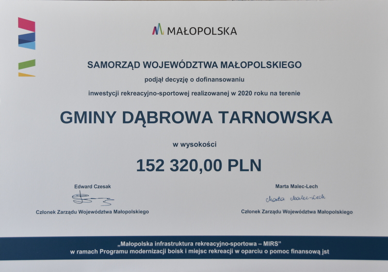 Projekt pn. „Małopolska Infrastruktura Rekreacyjno–Sportowa - MIRS”, realizowany od 2019 roku zakłada przede wszystkim modernizację istniejących obiektów sportowo – rekreacyjnych, a w szczególności: ogólnodostępne boiska sportowe (w tym między innymi piłkarskie i lekkoatletyczne), wielofunkcyjne boiska sportowe (przeznaczone do gry w piłkę ręczną, siatkówkę czy koszykówkę), siłownie plenerowe, skateparki oraz place sportowo-rekreacyjne – sprzyjające aktywności fizycznej, rozwijaniu siły, zręczności i wytrzymałości.