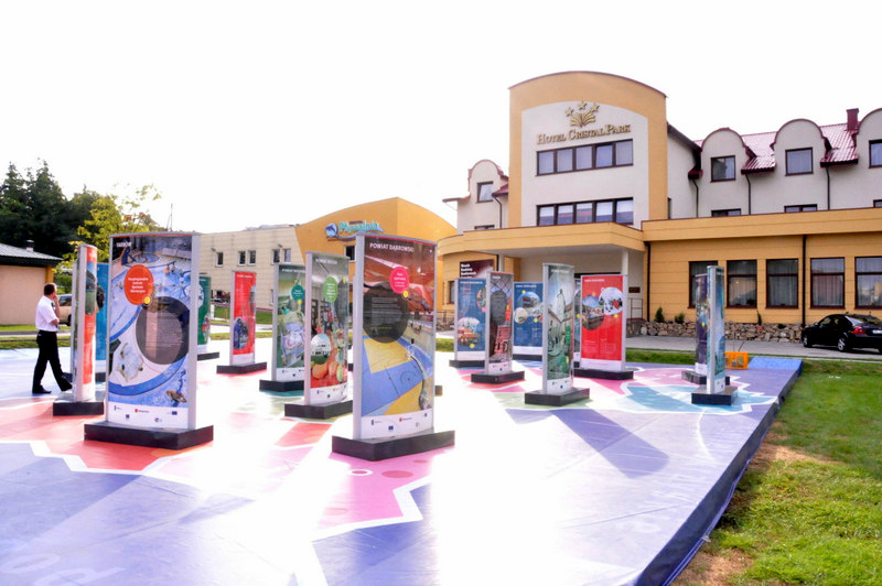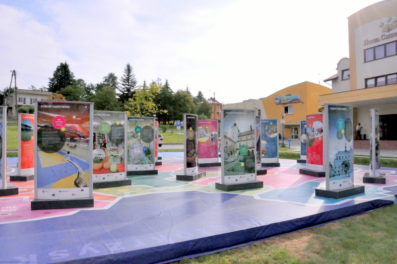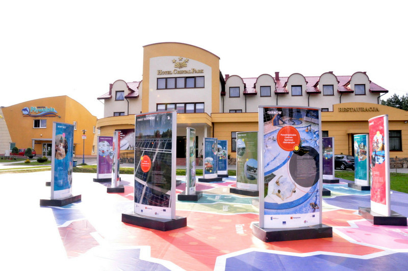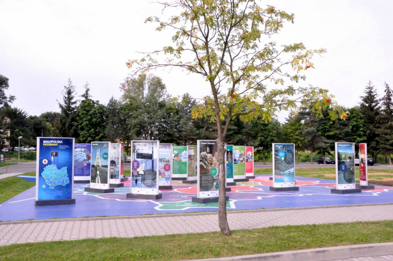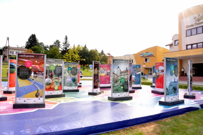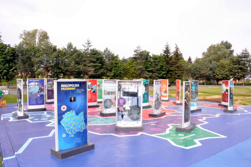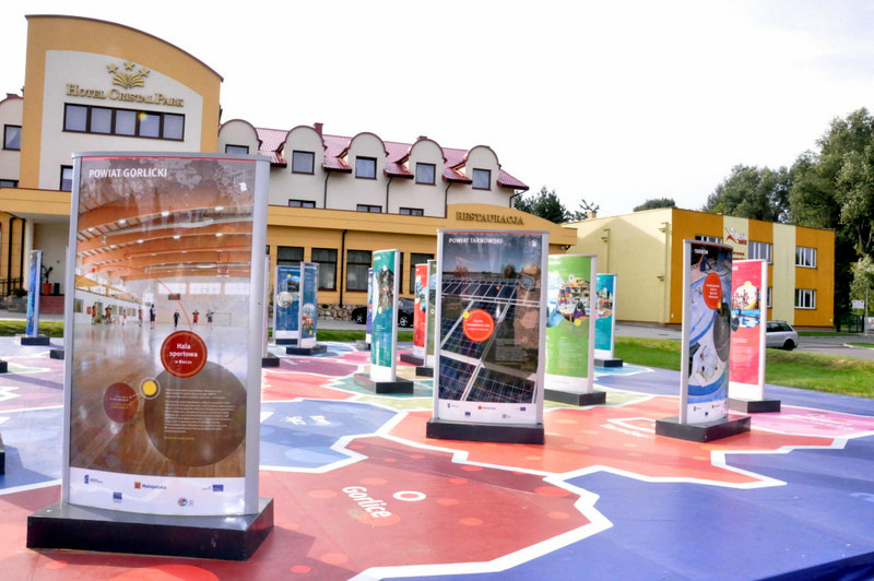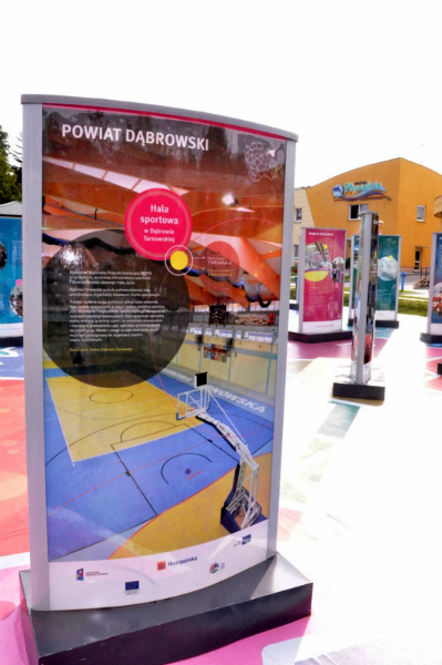 Wystawa prezentuje najciekawsze projekty z województwa małopolskiego, które otrzymały dofinansowanie z funduszy Unii Europejskiej. Każdy mieszkaniec i turysta może obejrzeć i ocenić zachodzące w Małopolsce zmiany, które przyczyniają się do jej kompleksowego rozwoju społeczno-gospodarczego, poprawy jakości życia mieszkańców obszarów wiejskich i wzrostu poziomu zatrudnienia w regionie. Wybrane projekty prezentowane są z podziałem na powiaty na podświetlanych totemach, co umożliwia oglądanie wystawy również w godzinach wieczornych. Totemy usytuowane są na mapie Małopolski. Wystawa prezentowana jest kolejno w 15 miejscowościach Małopolski! Wystawa prezentuje wybrane inwestycje z danego powiatu. Na totemie dot. powiatu dąbrowskiego znalazła się Hala Sportowa im. Agaty Mróz – Olszewskiej w Dąbrowie Tarnowskiej: wartość projektu: 7.508.948,40 zł; dofinansowanie z Małopolskiego Regionalnego Programu Operacyjnego (MRPO): 3.000.000,00 zł. W folderze wydanym przy okazji wystawy znalazło się dofinansowanie do budowy solarów przy Krytej Pływalni w Dąbrowie Tarnowskiej: wartość projektu 1.198.032,15 zł; dofinansowanie: 995.464,03 zł oraz realizacja projektu „Konserwator” - Malowanie zalipiańskich ornamentów kwiatowych w ramach Programu Operacyjnego Kapitał Ludzki (POKL) jako jeden z elementów projektu Województwa Małopolskiego.