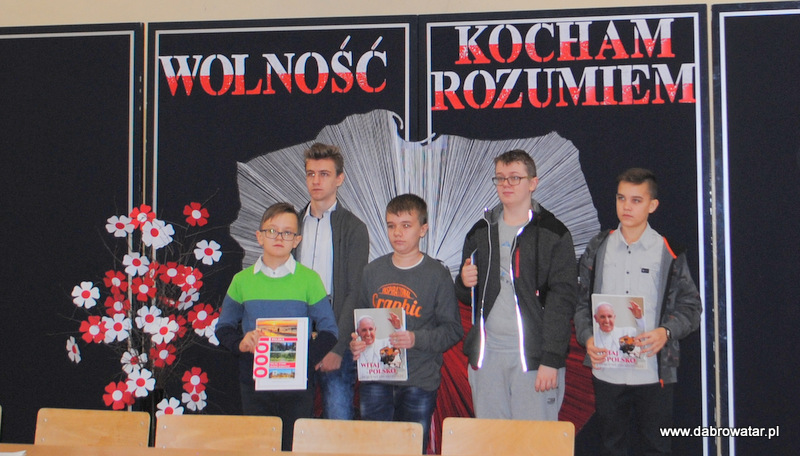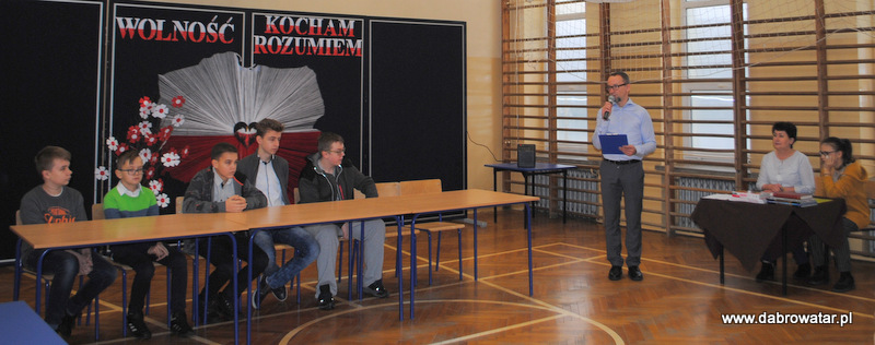 W środę 21 listopada 2018 roku odbył się na sali gimnastycznej w budynku szkoły na ul. Zaręby 22 międzyszkolny konkurs historyczny przygotowany przez nauczycieli historii i bibliotekarzy: p. Sławomira Batora, p. Danutę Pikul i p. Marzannę Pikul  i zorganizowany z myślą o stuleciu odzyskania przez Polskę niepodległości. Konkurs miał bardzo rozbudowaną tematykę, jednak był przeznaczony dla uczniów, którzy lubią historię i mają wiadomości przyswojone z zakresu całości materiału dotyczącego głównie naszej ojczyzny. Motywem przewodnim były lata walk legionowych na początku pierwszej wojny światowej, kiedy to niedaleko naszego regionu częściowo przebiegał szlak bojowy żołnierzy Józefa Piłsudskiego walczących z oddziałami rosyjskimi z Królestwa. Oprócz historii polski, zwłaszcza w wymiarze militarnym oraz walk legionowych z 1914 roku, trzeba było się również wykazać wiedzą z historii Dąbrowy Tarnowskiej. Temat konkursu brzmiał następująco: Sylwetka Józefa Piłsudskiego – jednego z architektów niepodległej Polski oraz najważniejsze wydarzenia z historii Polski z elementami historii region.