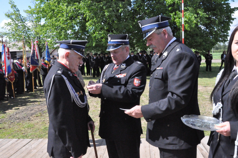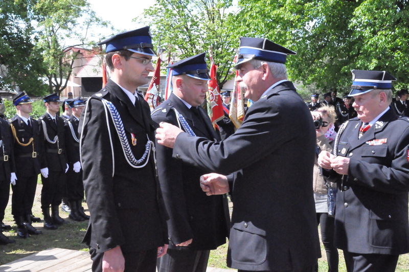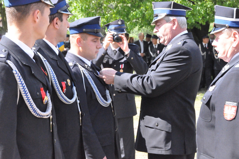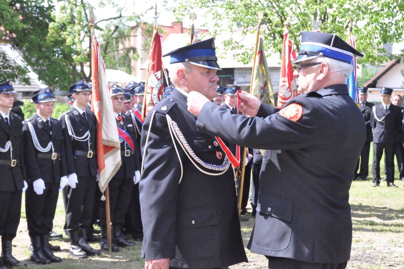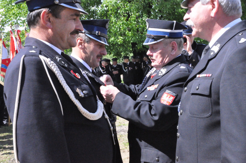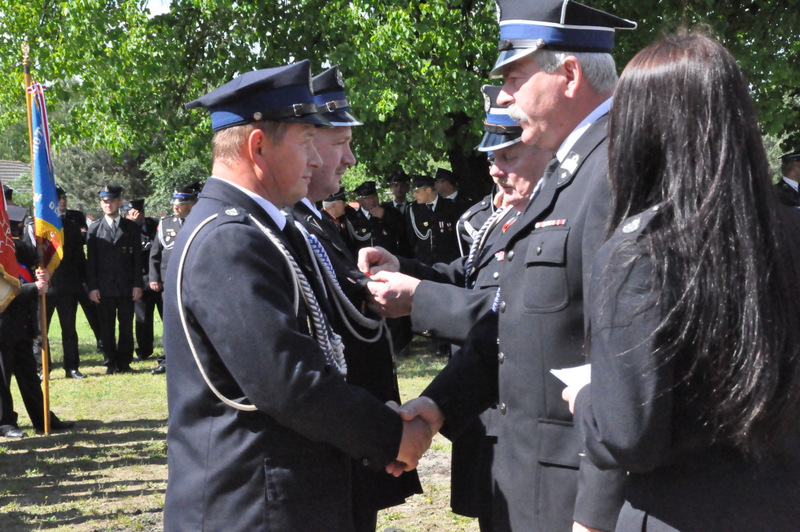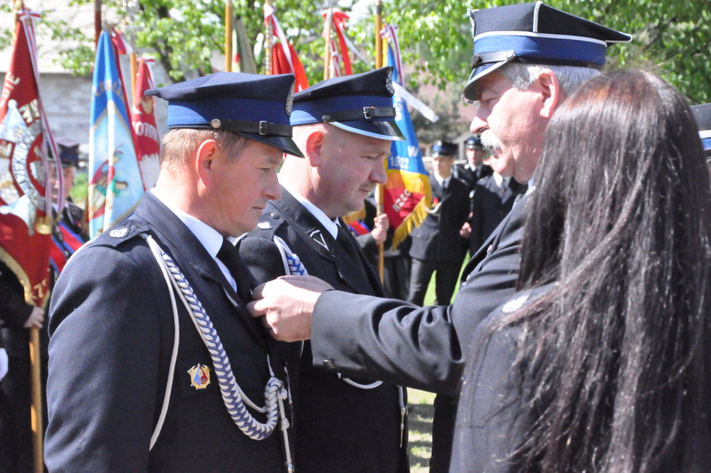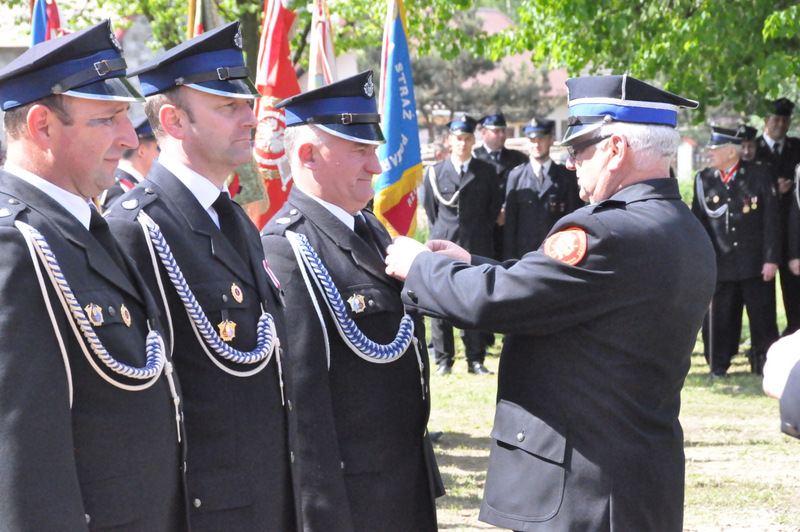 Aktu dekoracji dokonali: Wiceprezes Zarządu Oddziału Wojewódzkiego Związku OSP druh Ryszard Pikul, Prezes Zarządu Oddziału Miejsko – Gminnego Związku OSP druh Stanisław Początek oraz Członek Zarządu Oddziału Wojewódzkiego ZOSP RP Tadeusz Kwiatkowski.
