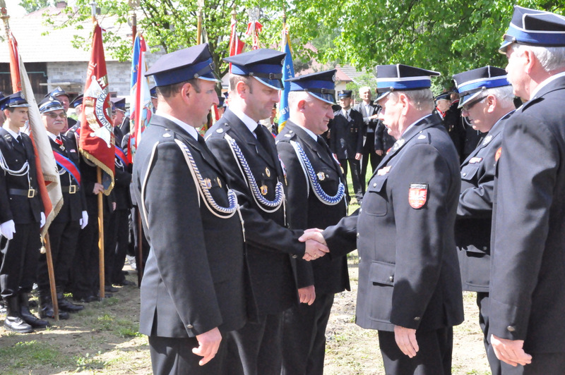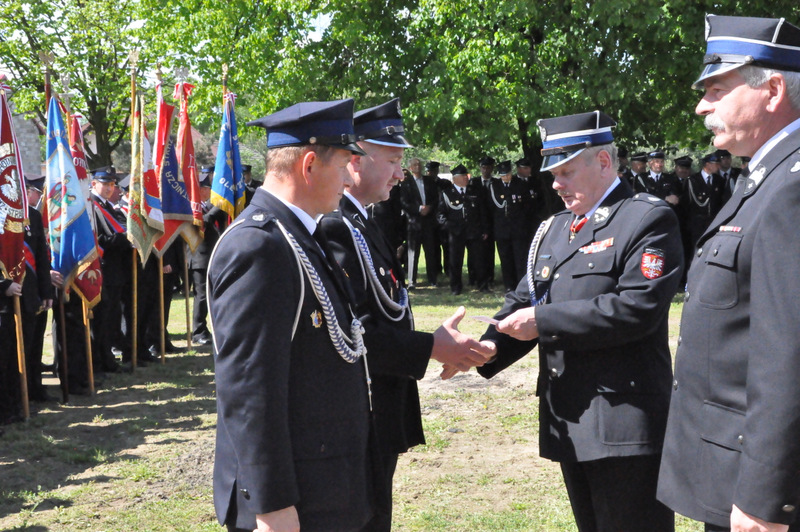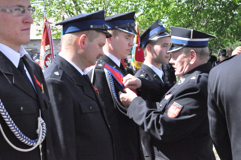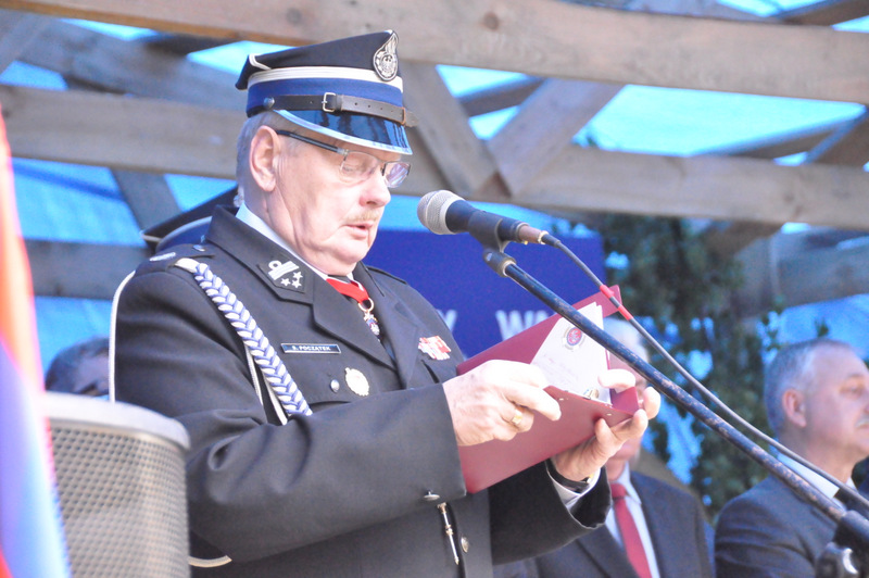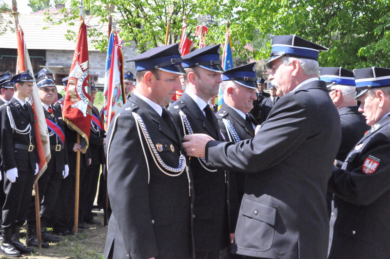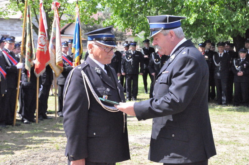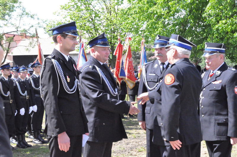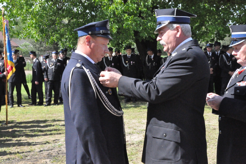 Aktu dekoracji dokonali: Wiceprezes Zarządu Oddziału Wojewódzkiego Związku OSP druh Ryszard Pikul, Prezes Zarządu Oddziału Miejsko – Gminnego Związku OSP druh Stanisław Początek oraz Członek Zarządu Oddziału Wojewódzkiego ZOSP RP Tadeusz Kwiatkowski.
