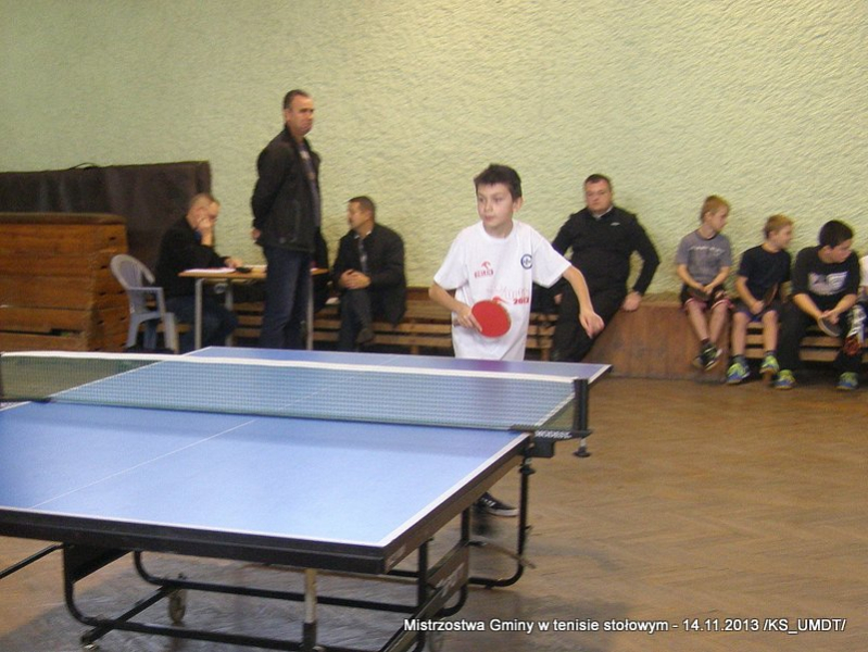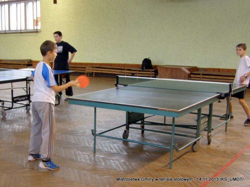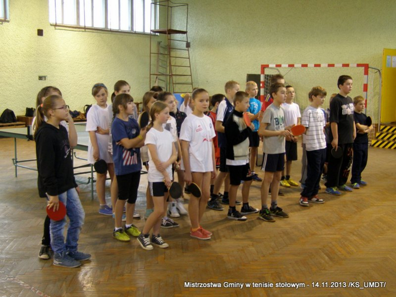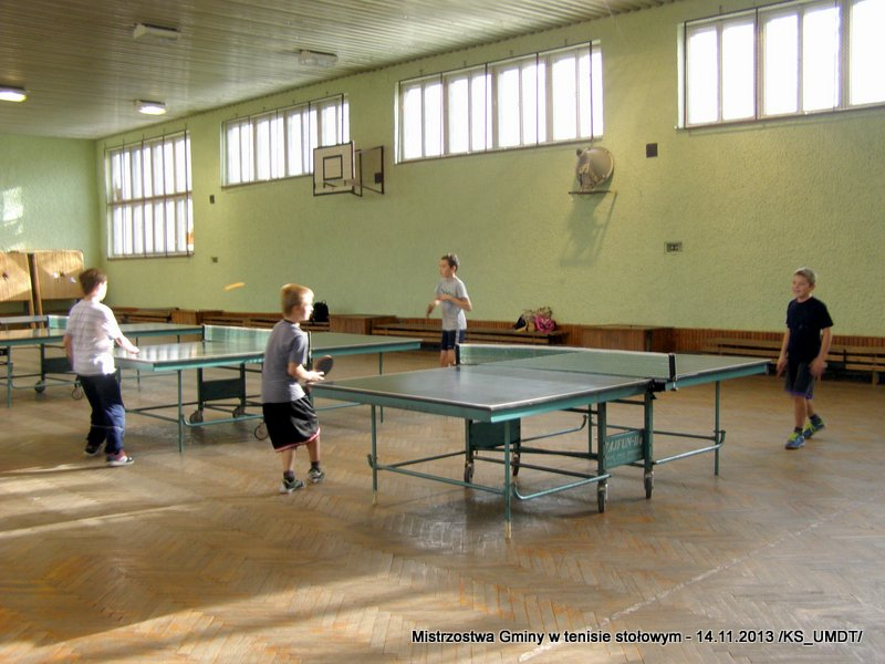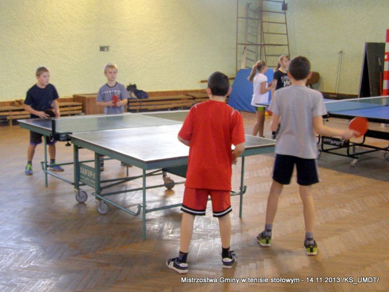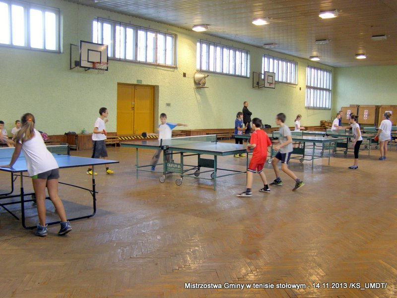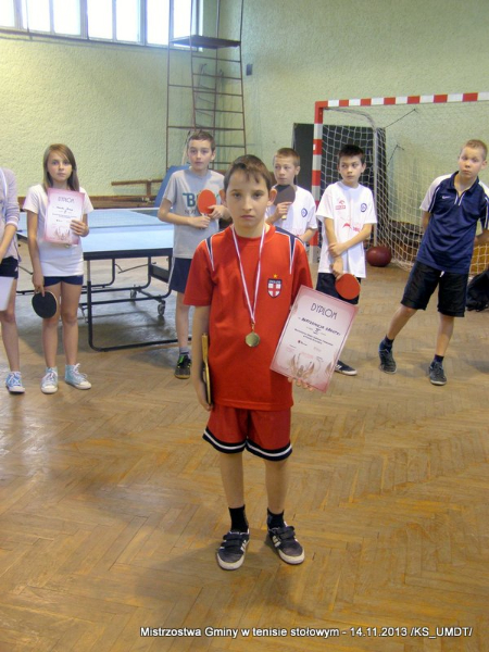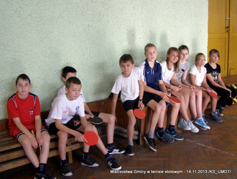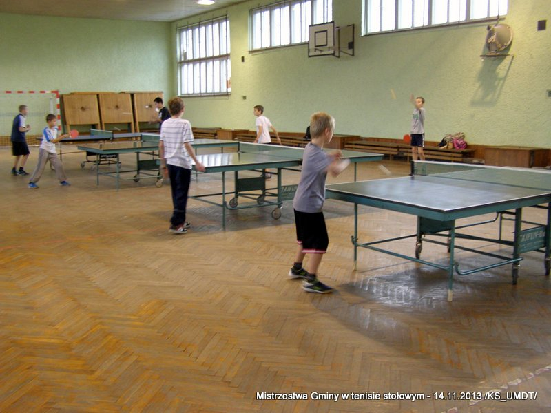14 listopada 2013 r. uczniowie szkół podstawowych rozegrali na terenie hali łuczniczej w Dąbrowie Tarnowskiej „Turniej tenisa stołowego”. W ramach realizacji szkolnego kalendarza sportowego walczono o tytuł Mistrza Gminy zarówno w kategorii indywidualnej, jak i drużynowej. Dodatkowym profitem dla zwycięzców był awans do zawodów powiatowych i dalsza rywalizacja z rówieśnikami z sąsiednich gmin. Do walki przy stołach tenisowych stanęło 24 zawodników i zawodniczek. Mecze rozgrywane były systemem pucharowym, a pieczę nad turniejem sprawował sędzia główny, Pan Stanisław Jarmuła. W efekcie rozegranych pojedynków indywidualnych wśród chłopców, awans do zawodów powiatowych wywalczyli: 1 miejsce - Starzec Konrad - PSP Lipiny 2 miejsce – Garstka Bartłomiej - PSP Smęgorzów 3 miejsce – Pyzik Bartłomiej - PSP Gruszów Wielki 4 miejsce – Trela Paweł - PSP Gruszów Wielki 5 miejsce – Ryczek Mateusz - PSP Smęgorzów 6 miejsce – Bożek Wiktor - PSP Lipiny