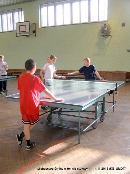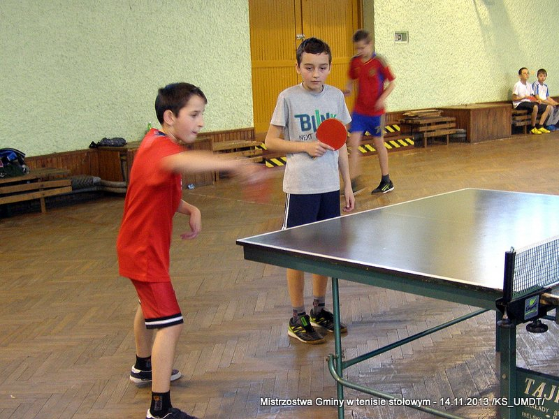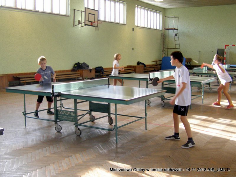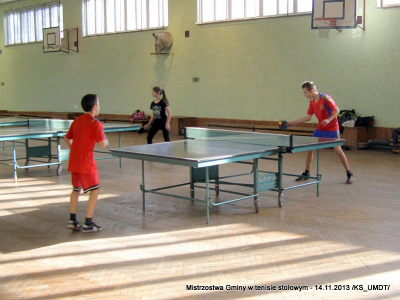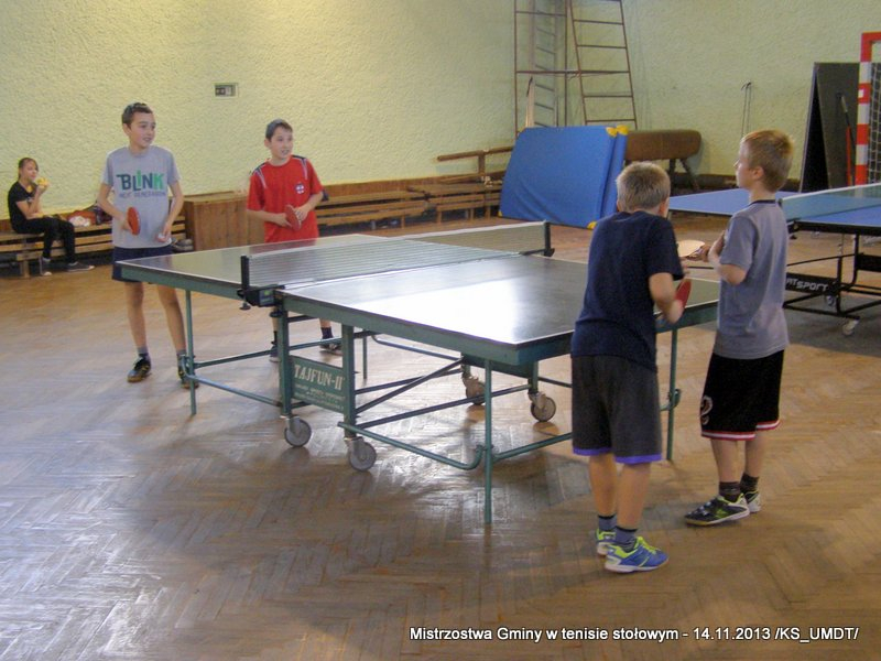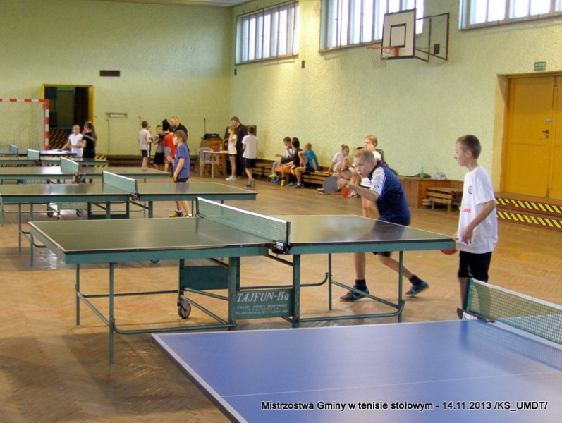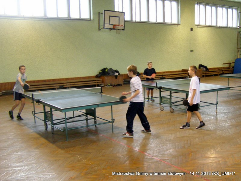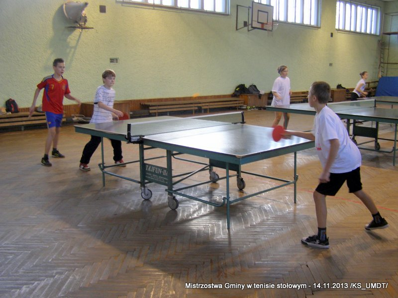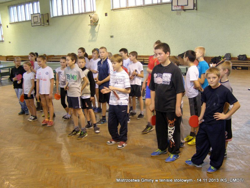 14 listopada 2013 r. uczniowie szkół podstawowych rozegrali na terenie hali łuczniczej w Dąbrowie Tarnowskiej „Turniej tenisa stołowego”. W ramach realizacji szkolnego kalendarza sportowego walczono o tytuł Mistrza Gminy zarówno w kategorii indywidualnej, jak i drużynowej. Dodatkowym profitem dla zwycięzców był awans do zawodów powiatowych i dalsza rywalizacja z rówieśnikami z sąsiednich gmin. Do walki przy stołach tenisowych stanęło 24 zawodników i zawodniczek. Mecze rozgrywane były systemem pucharowym, a pieczę nad turniejem sprawował sędzia główny, Pan Stanisław Jarmuła. W efekcie rozegranych pojedynków indywidualnych wśród chłopców, awans do zawodów powiatowych wywalczyli: 1 miejsce - Starzec Konrad - PSP Lipiny 2 miejsce – Garstka Bartłomiej - PSP Smęgorzów 3 miejsce – Pyzik Bartłomiej - PSP Gruszów Wielki 4 miejsce – Trela Paweł - PSP Gruszów Wielki 5 miejsce – Ryczek Mateusz - PSP Smęgorzów 6 miejsce – Bożek Wiktor - PSP Lipiny