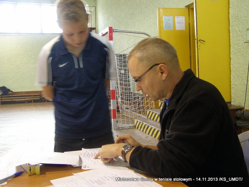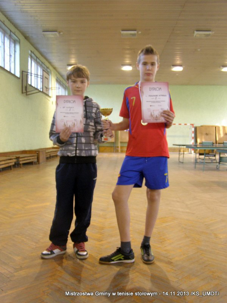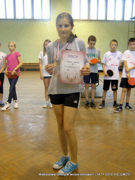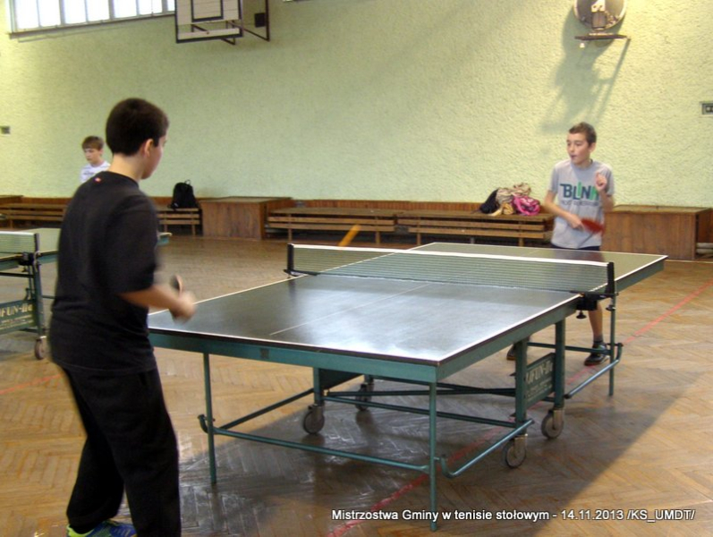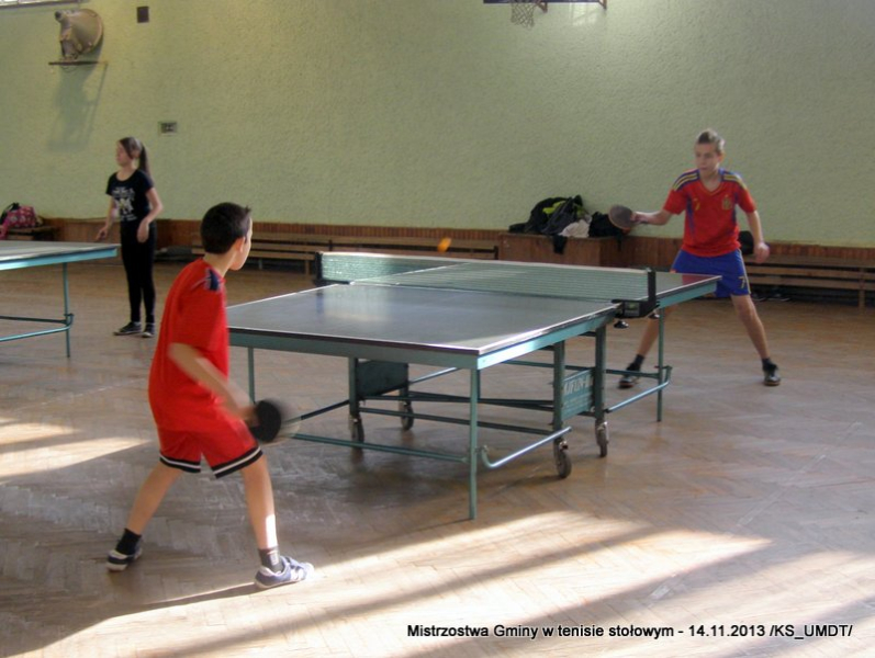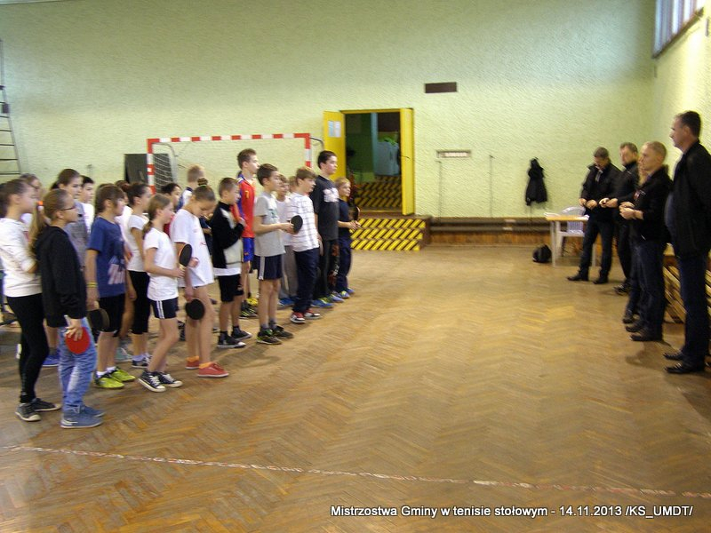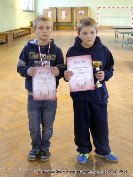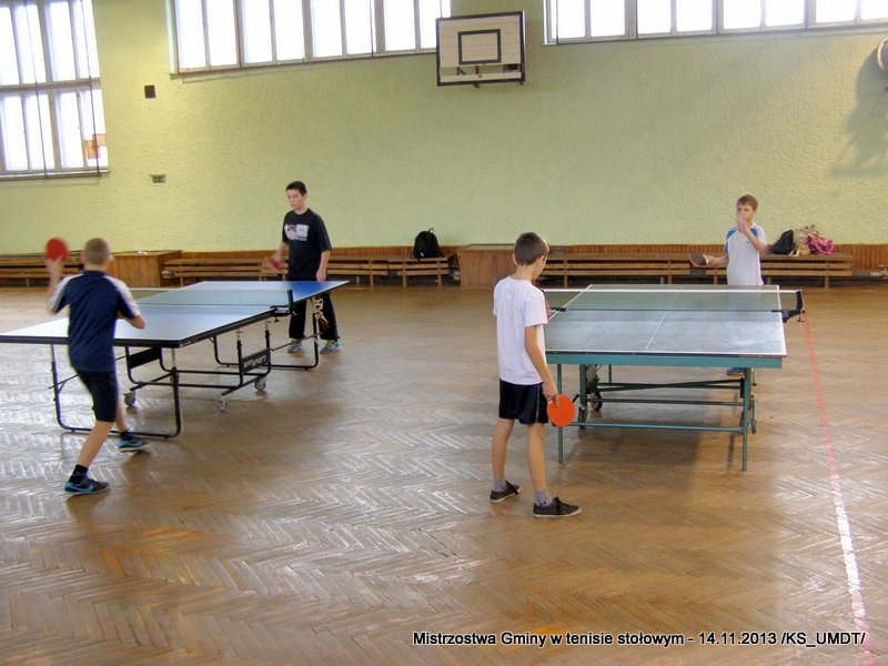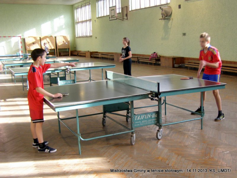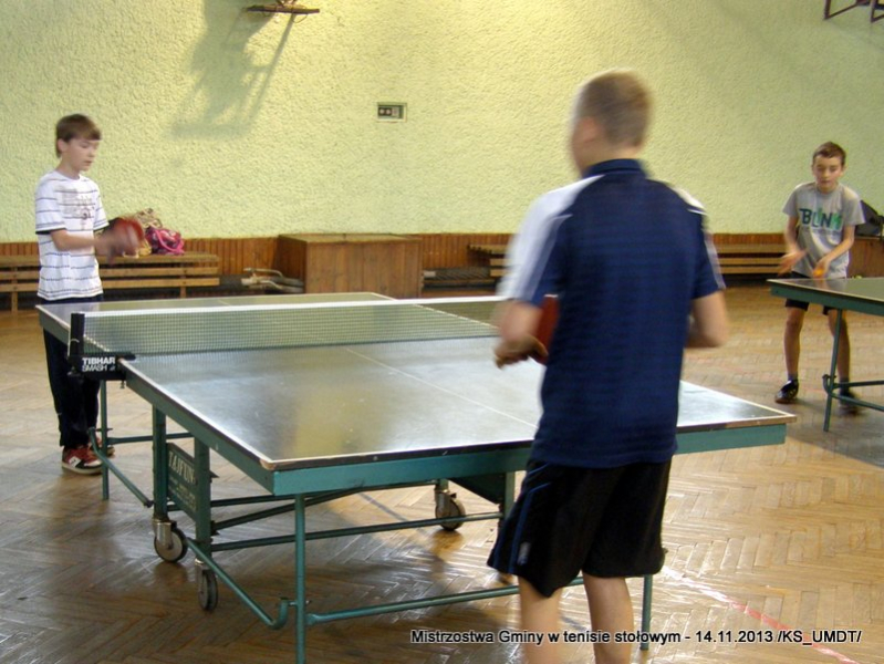 14 listopada 2013 r. uczniowie szkół podstawowych rozegrali na terenie hali łuczniczej w Dąbrowie Tarnowskiej „Turniej tenisa stołowego”. W ramach realizacji szkolnego kalendarza sportowego walczono o tytuł Mistrza Gminy zarówno w kategorii indywidualnej, jak i drużynowej. Dodatkowym profitem dla zwycięzców był awans do zawodów powiatowych i dalsza rywalizacja z rówieśnikami z sąsiednich gmin. Do walki przy stołach tenisowych stanęło 24 zawodników i zawodniczek. Mecze rozgrywane były systemem pucharowym, a pieczę nad turniejem sprawował sędzia główny, Pan Stanisław Jarmuła. W efekcie rozegranych pojedynków indywidualnych wśród chłopców, awans do zawodów powiatowych wywalczyli: 1 miejsce - Starzec Konrad - PSP Lipiny 2 miejsce – Garstka Bartłomiej - PSP Smęgorzów 3 miejsce – Pyzik Bartłomiej - PSP Gruszów Wielki 4 miejsce – Trela Paweł - PSP Gruszów Wielki 5 miejsce – Ryczek Mateusz - PSP Smęgorzów 6 miejsce – Bożek Wiktor - PSP Lipiny