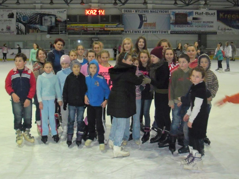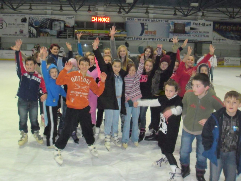 Po przyjeździe pierwsze kroki skierowano do wypożyczalni łyżew. Samo dopasowanie łyżew do rozmiaru stopy zajęło trochę czasu, nie każdemu udało się to za pierwszym razem. Następnie przez dwie godziny uczestnicy wyjazdu mieli możliwość wykazać się swoimi umiejętnościami łyżwiarskimi. Wielu łyżwy miało pierwszy raz na nogach i dlatego nie obyło się bez drobnych upadków. Humory dopisywały i wszyscy bawili się doskonale. Z zadowoleniem należy stwierdzić ,że wyjazd był bardzo udany, dostarczył wszystkim niezapomnianych wrażeń, wzmocnił sprawność fizyczną dzieci i młodzieży oraz poprawił ich umiejętności jazdy na łyżwach. Z tej formy wypoczynku skorzystało 50 dzieci i młodzieży z terenu wsi Nieczajna. Opiekę nad młodzieżą w sobotnie popołudnie zapewniły panie ze stowarzyszenia: Renata Sojka, Elżbieta Bąba, Marta Odrowska i Halina Nędza.