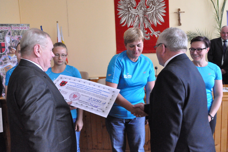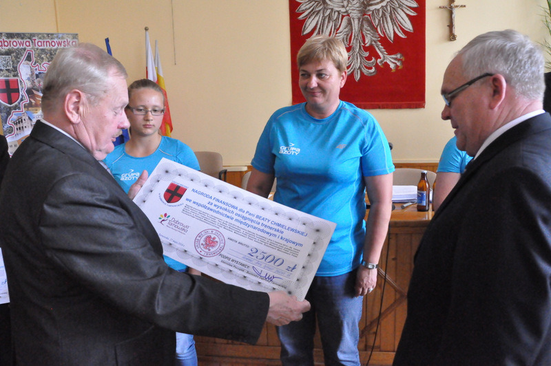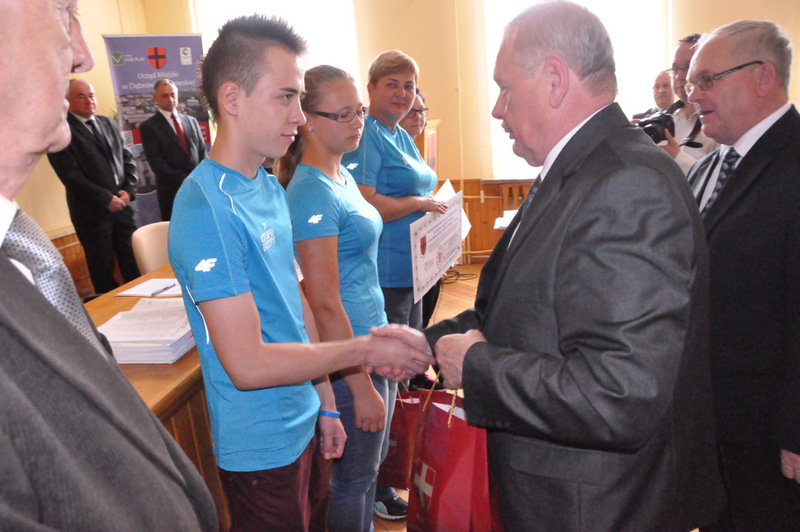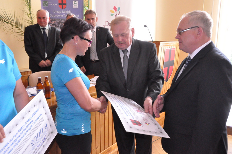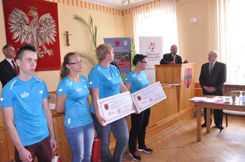 Podczas odbywającej w dniu 27 maja br. sesji Rady Miejskiej w Dąbrowie Tarnowskiej doszło do bardzo miłej uroczystości, stanowiącej podziękowanie dla dąbrowskich sportowców, którzy w 2013 roku osiągnęli wybitne wyniki sportowe we współzawodnictwie międzynarodowym i krajowym. Kilkoro z nich, tych z najwyższymi wynikami sportowymi oraz ich trenerów otrzymało z rąk Burmistrza Dąbrowy Tarnowskiej - Stanisława Początka oraz Przewodniczącego Rady Miejskiej - Władysława Knutelskiego nagrody rzeczowe i finansowe, w uznaniu niewątpliwych zasług w rozsławianiu naszej małej ojczyzny na arenie krajowej i międzynarodowej, poprzez osiągane wyniki i zdobywane medale.