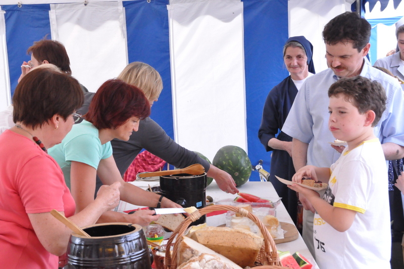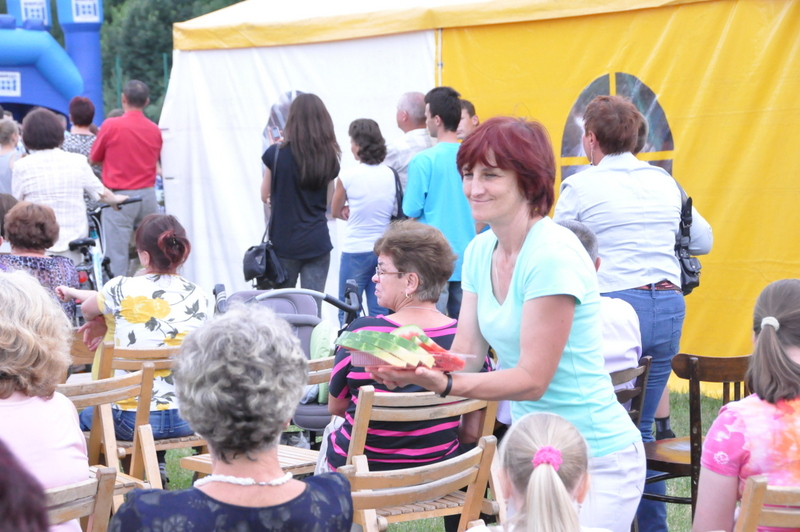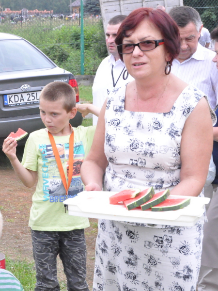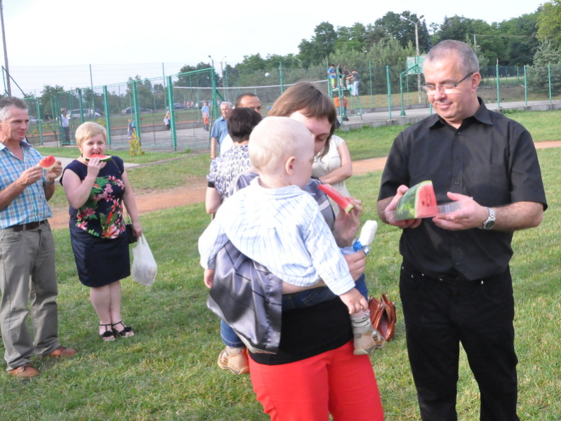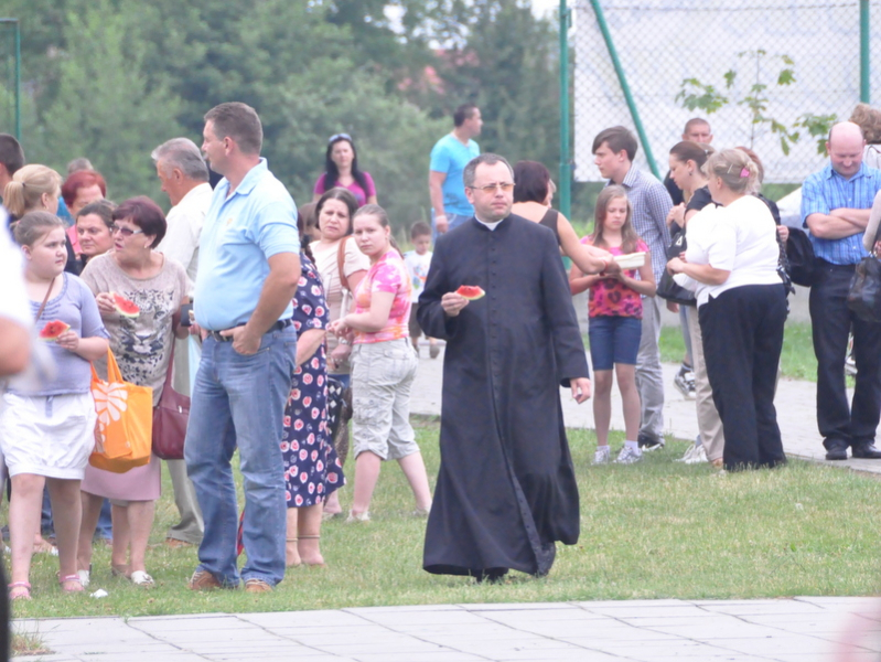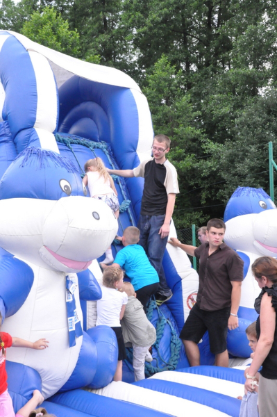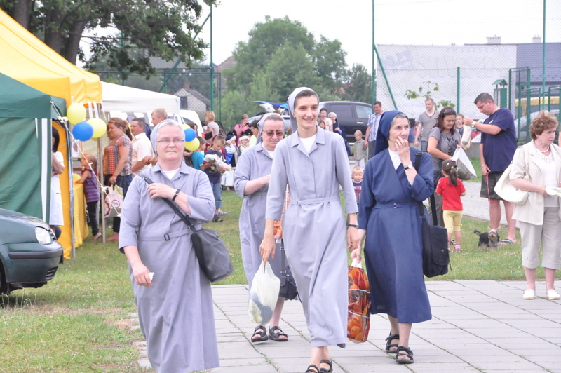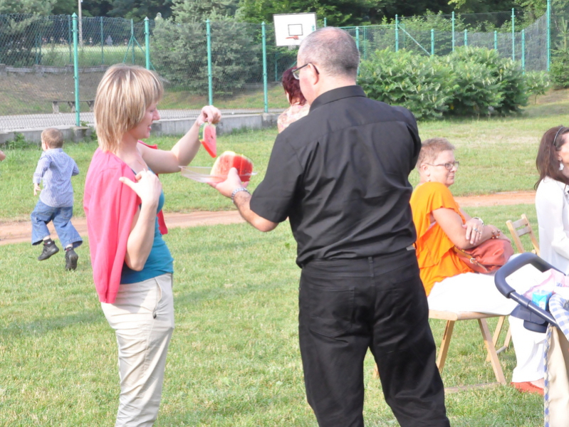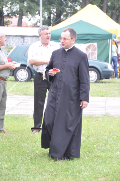 Jak co roku czas Parafialnego Pikniku Rodzinnego wypełniony był wieloma atrakcjami, m.in. takimi jak: możliwość zakupu cegiełek z upominkami – niespodziankami zebranymi od wielu sponsorów i ludzi dobrej woli, występy dzieci z Ochronki im. Jana Pawła II oraz młodzieży z Gimnazjum Nr 2, zabawy dla dzieci na trzech dmuchanych wieżach „Oknoplastu”, parada motocyklistów. Dla dzieci wspólną zabawę organizował wodzirej. Chwile niezapomnianych emocji dostarczyli crossowcy z pokazem skoków przez rampę. Z koncertem wystąpił także dąbrowski zespół GPS. Późnym wieczorem można było potańczyć, jak również zobaczyć pokaz ogni sztucznych. W tym roku uzyskane środki przekazane zostaną na wyjazdy wakacyjne dzieci i młodzieży z parafii, oraz na remont dąbrowskiej Ochronki. Na dąbrowskim pikniku rodzin, prócz zabaw sportowych i tanecznych nie zabrakło także: tradycyjnego bigosu, wyrobów z grilla i chłopskiego jadła, kiszonych ogórków, różnego rodzaju chlebów oraz wielu wspaniałych ciast przygotowanych m.in. przez rodziców ministrantów i lektorów, rodziców dzieci z Ochronki i innych. Każdy zapewne spróbował pysznych arbuzów, których tona została przekazana dla piknikowiczów. Wszyscy zgromadzeni bardzo miło i dobrze spędzili czas. Można było zobaczyć jak rodziny naszej parafii – naszego miasta, mogą się naprawdę dobrze bawić.