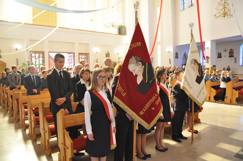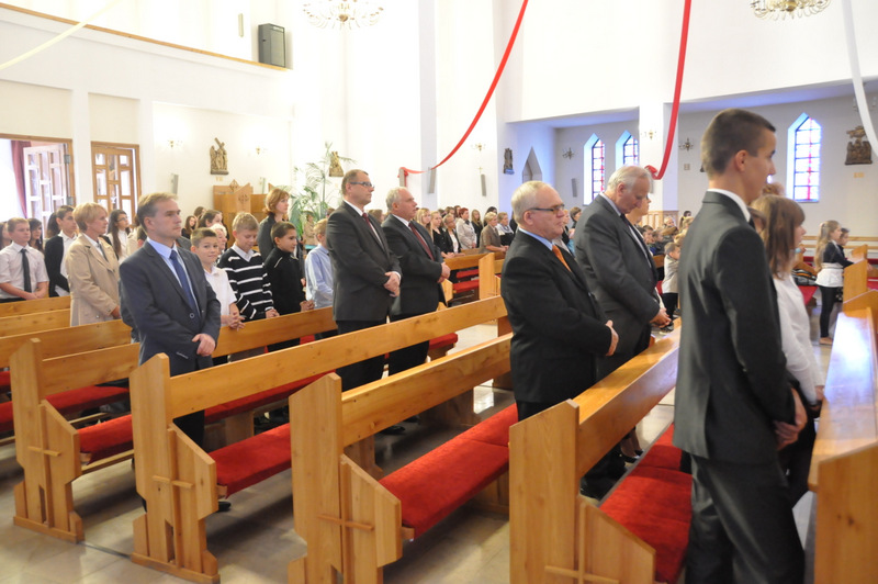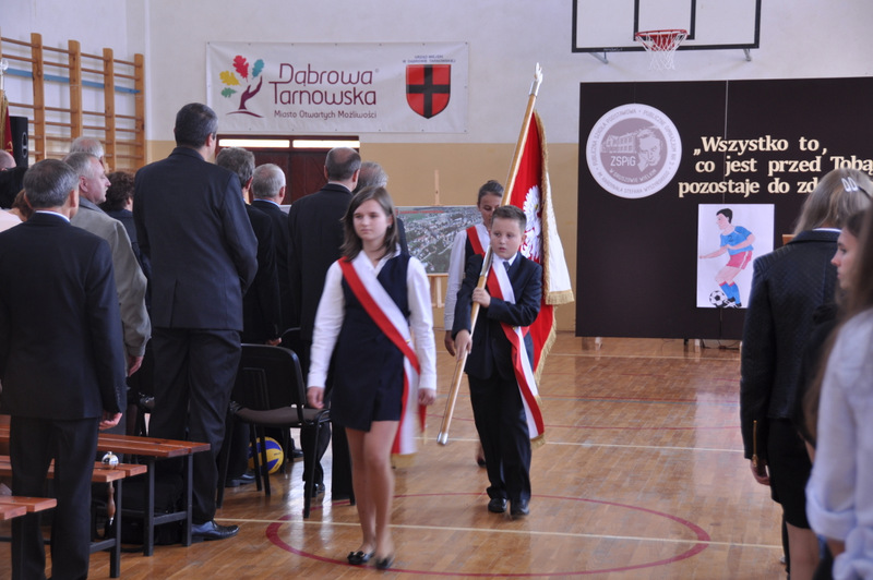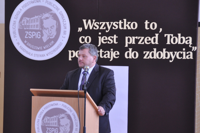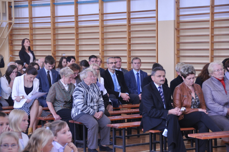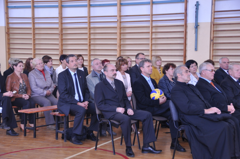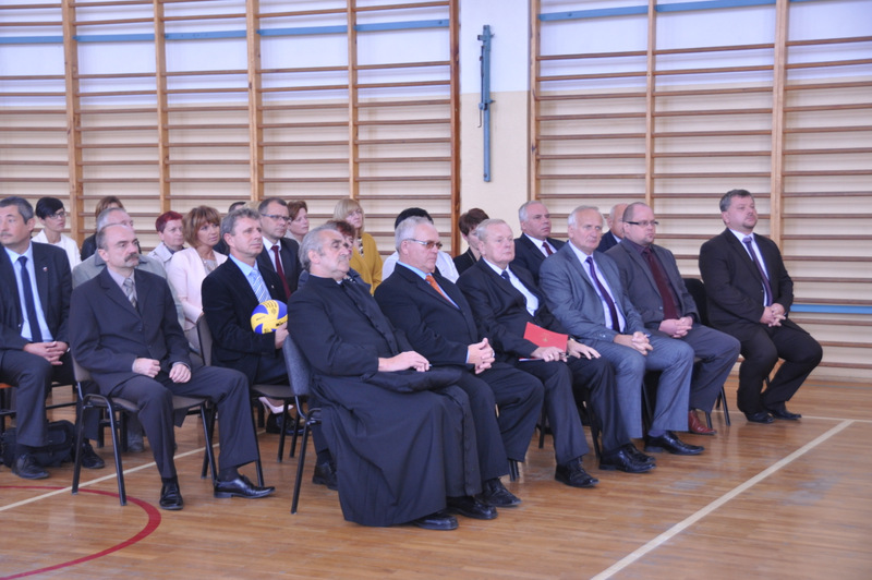 Dyrektor szkoły Marcin Jarzwiec przywitał gości, którzy swoją obecnością zaszczycili tak ważną uroczystość dla szkoły i miejscowości Gruszów Wielki - Burmistrza Dąbrowy Tarnowskiej Stanisława Początka, Przewodniczącego Rady Miejskiej w Dąbrowie Tarnowskiej Władysława Knutelskiego wraz z radnymi, wiceburmistrza Dąbrowy Tarnowskiej Marka Minorczyka, proboszcza parafii Rzymskokatolickiej w Gruszowie Wielkim księdza Stanisława Żurata, dyrektora ZOSiP w Dąbrowie Tarnowskiej Mariana Gajdę wraz z pracownikami, dyrektorów szkół podstawowych, gimnazjów i szkół ponadgimnazjalnych z terenu gminy Dąbrowa Tarnowska, dyrektora Miejskiej Biblioteki Publicznej w Dąbrowie Tarnowskiej Jadwigę Kusior, dyrektora Dąbrowskiego Domu Kultury Pawła Chojnowskiego, kierownika Referatu Kultury Fizycznej i Sportu Urzędu Miejskiego w Dąbrowie Tarnowskiej Witolda Reczka, radną i sołtys Gruszowa Wielkiego Józefę Taraskę, kierownika Referatu Inwestycji i Zamówień Publicznych Marcina Stefańczyka wraz ze współpracownikami, prezesa ZNP w Dąbrowie Tarnowskiej Jerzego Stelmacha, kierownika szkoły filialnej w Sutkowie Beatę Kutę wraz z nauczycielami oraz wicedyrektor ZSPiG w Gruszowie Wielkim Dorotę Bzdułę, wszystkich nauczycieli, rodziców i uczniów.