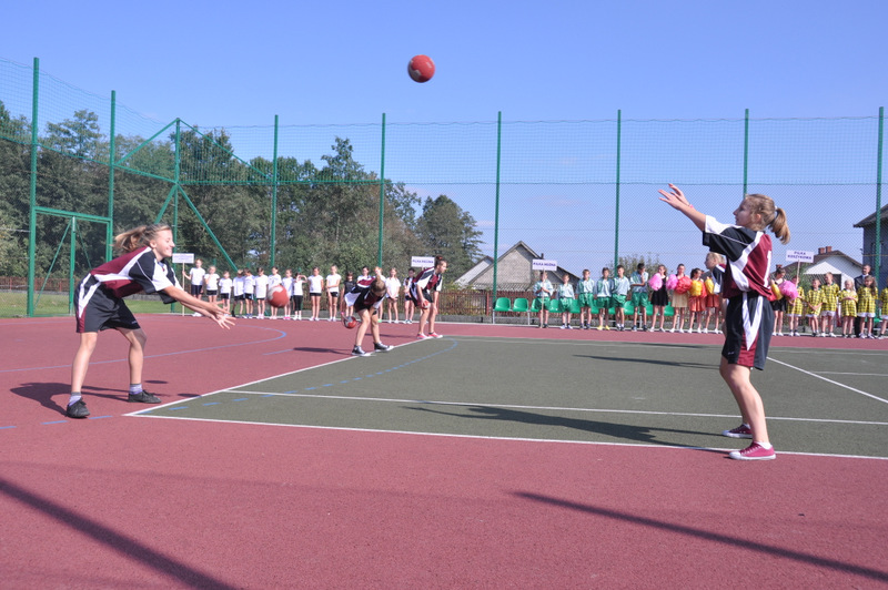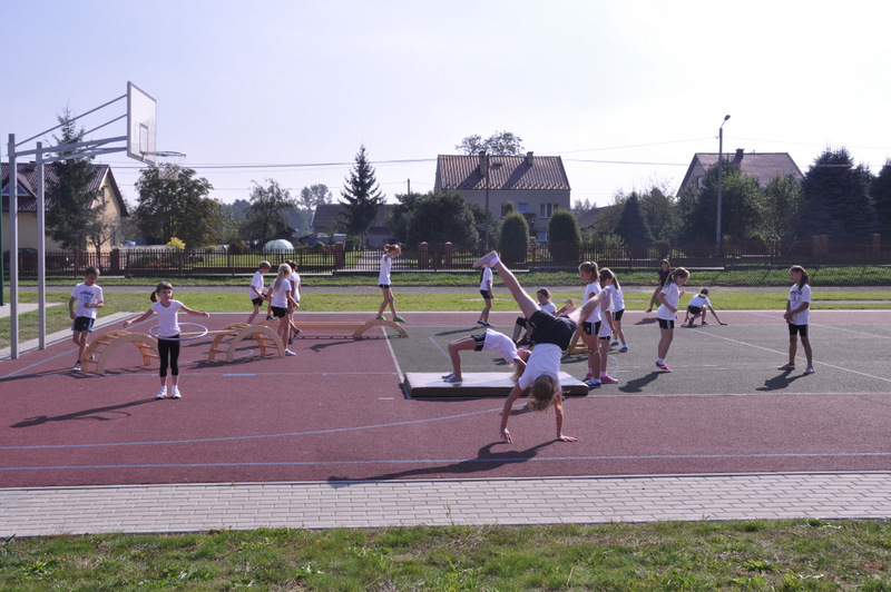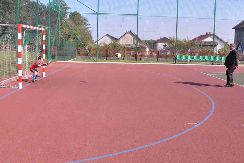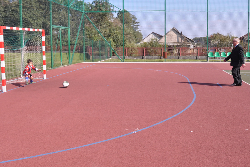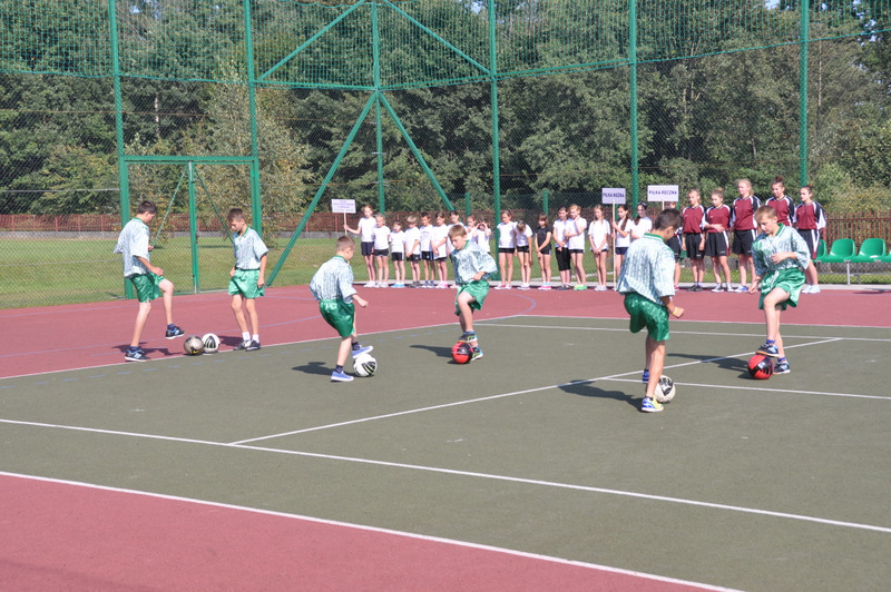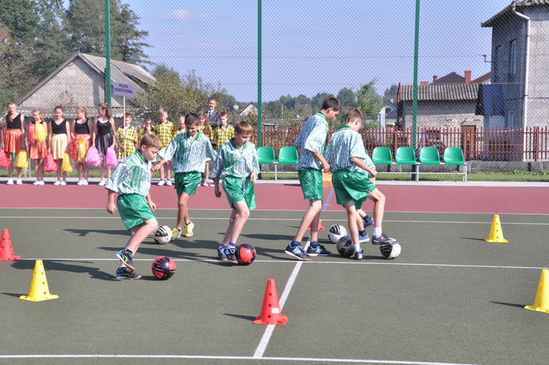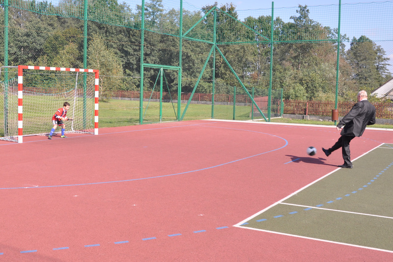 Drugą część uroczystości rozpoczął pan Burmistrz symbolicznym strzałem na bramkę będącym oficjalnym wyrazem otwarcia boisk. Po nim nastąpiła część artystyczna w wykonaniu uczniów ZSPiG przygotowana przez Jerzego Dąbrowę i Roberta Pacześniowskiego. Był to pokaz umiejętności kilku grup sportowych, które zaprezentowały przegląd sprawnościowy w ramach wybranych dyscyplin sportowych.