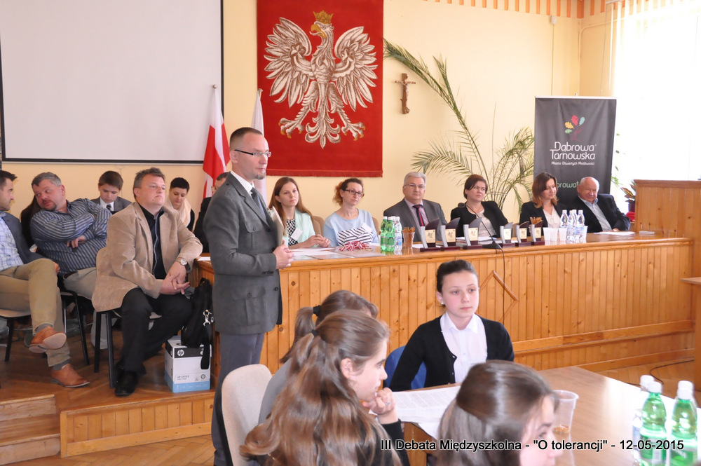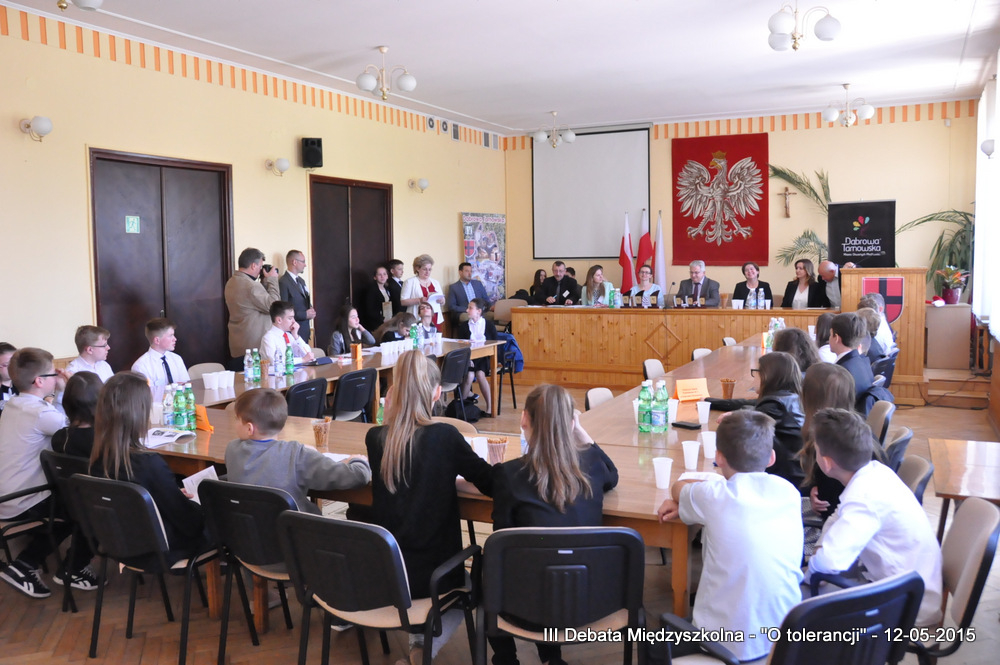 12 maja 2015 roku w Sali obrad dąbrowskiego Urzędu Gminy odbyła się debata niecodzienna. Dyskutantami były dzieci – wybrani uczniowie pięciu szkół podstawowych z naszej gminy ze starszych klas, którzy wcielili się w role dorosłych radnych zmuszonych przedyskutować bardzo ważne kwestie. Celami  III debaty międzyszkolnej było między innymi wdrażanie dzieci do działalności do udziału w życiu społecznym, kształtowanie świadomości obywatelskiej na wczesnym etapie edukacyjnym, nawiązanie zdrowych relacji i współpracy między uczniami podstawówek miasta i gminy oraz ćwiczenie sprawności oratorskich uczniów.