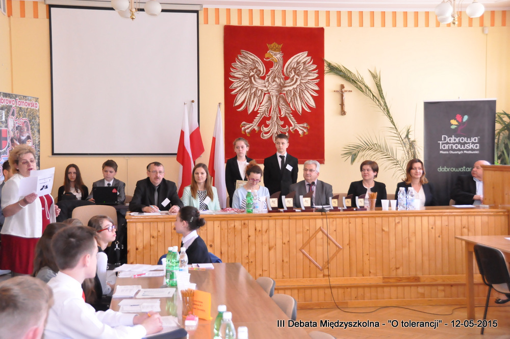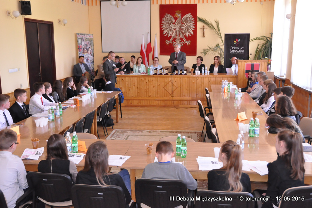 Debata jest kontynuacją projektu zapoczątkowanego przez nauczycieli PSP nr 1 – Panią  Bogusławę Warecką Łachut i Pana  Krzysztofa Niemca w roku szkolnym 2012/2013 i została przeprowadzona między uczniami PSP nr 1 i  PSP nr 2 w Dąbrowie Tarnowskiej. W roku szkolnym 2013/2014 debata została przeprowadzona przez nauczycieli PSP nr 2 -  Pana  Sławomira Batora i Panią Dianę Dyda i miała analogiczną formułę. Debaty  realizowały założony postulat współpracy między obu szkołami i udowodniły, że szkoły tego formatu i uczący w nich nauczyciele mogą  z powodzeniem współpracować i odnosić sukcesy. Debatę w tym roku również organizowali  ci sami nauczyciele obu szkół jako jeden zespół. Była to trzecia taka debata, jednak po raz pierwszy została zorganizowana z takim rozmachem i w takim miejscu. Efektem było spotkanie, dzięki któremu uczniowie mogli poczuć się jak dorośli radni i dyskutować na ważny temat. W tym roku tematem debaty była tolerancja. Po wymianie poglądów podczas organizowanej debaty nastąpiło zredagowanie wniosków, a dalszym etapem jest przedstawienie ich władzom miasta, organowi oświaty, dyrektorom i RP szkół oraz uczniom. Każdy zespół dyskutantów otrzymał dla szkoły pamiątkowy dyplom, trzech najlepszych dyskutantów otrzymało statuetki dla siebie a najlepsze zespoły reprezentujące szkoły również dostały statuetki. Oprócz tego wyróżniający się uczniowie mogli otrzymać medale. Wszystkie nagrody zostały ufundowane przez burmistrza miasta pana Krzysztofa Kaczmarskiego i on sam był tez obecny podczas obrad jako patron imprezy o dużym znaczeniu kulturalnym. W trakcie swojego wystąpienia podkreślił, że podobne inicjatywy są bardzo ważne w perspektywie czasu i dla dobra rozwoju miasta oraz gminy. Te same dzieci w przyszłości mogą jako dorośli zasiadać w radzie miasta i decydować o sprawach dotyczących nas wszystkich. Im szybciej poprzez formułę zabawy poznają mechanizmy działania konstruktywnych dyskusji i debat, tym lepiej będą to robić w przyszłości. Obecni byli również dyrektorzy szkół, których uczniowie debatowali na sali obrad.