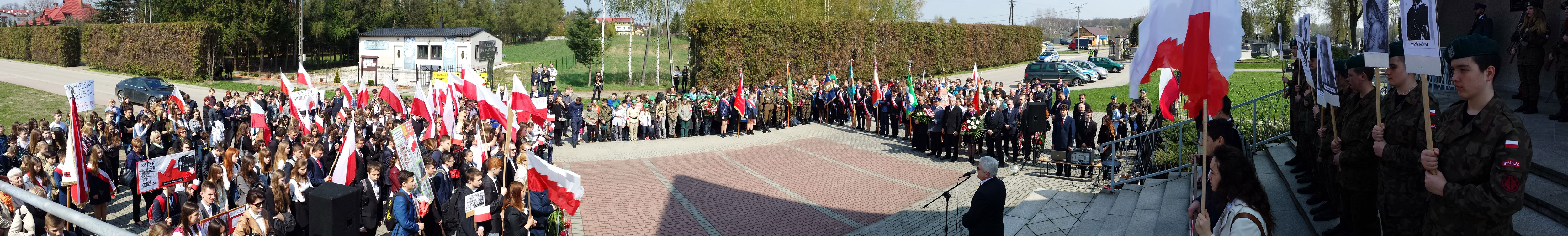 Pod Tablicą Katyńską Burmistrz Krzysztof Kaczmarski powitał przybyłych i przypomniał tło historyczne zbrodni katyńskiej. Młodzież z Publicznego Gimnazjum Nr 2 w Dąbrowie Tarnowskiej wygłosiła apel poległych, a uczennica tej szkoły Ilona Krawczyk wykonała okolicznościowy utwór wokalny. Słowa podsumowujące uroczystość wygłosił Ksiądz Proboszcz Stanisław Cyran, który następnie odmówił modlitwę za rozstrzelanych w Katyniu oraz za ofiary katastrofy smoleńskiej.