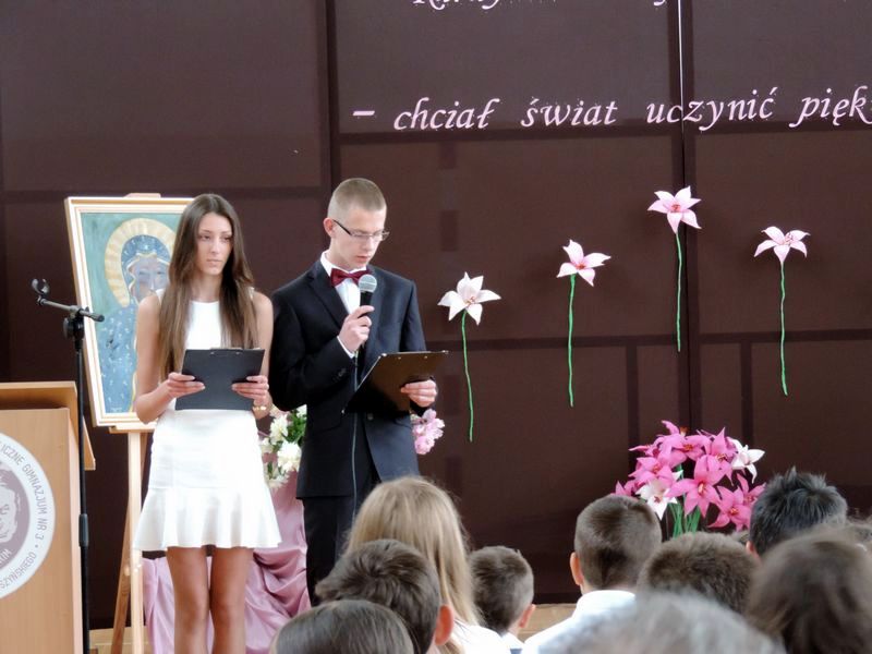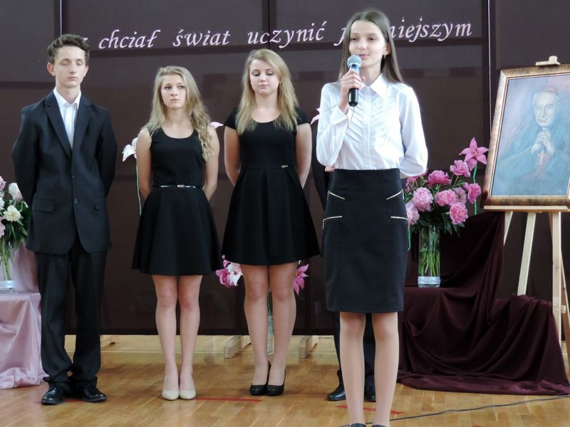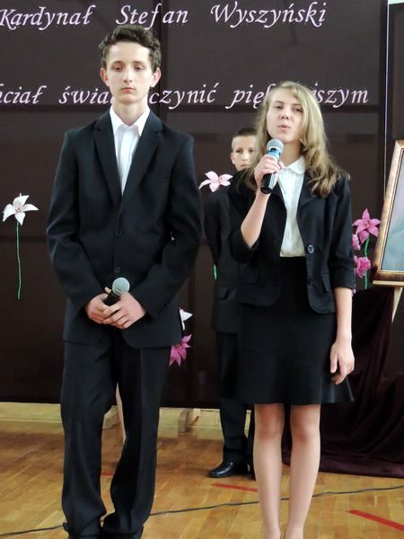 Ważnym momentem Obchodów Dnia Patrona była uroczysta akademia przygotowana przez uczniów Gimnazjum pod opieką  pani Katarzyny Fijał, pani Elżbiety Kaczochy oraz pani Lucyny Krzanowskiej. Jej motto stanowiły słowa: „Kardynał Stefan Wyszyński – chciał świat uczynić piękniejszym”, a całość  była  przekazem skłaniającym do refleksji nad     wartościami, które Stefan Wyszyński uważał za fundamentalne w życiu człowieka -  drugi, człowiek, ojczyzna i głęboka wiara.