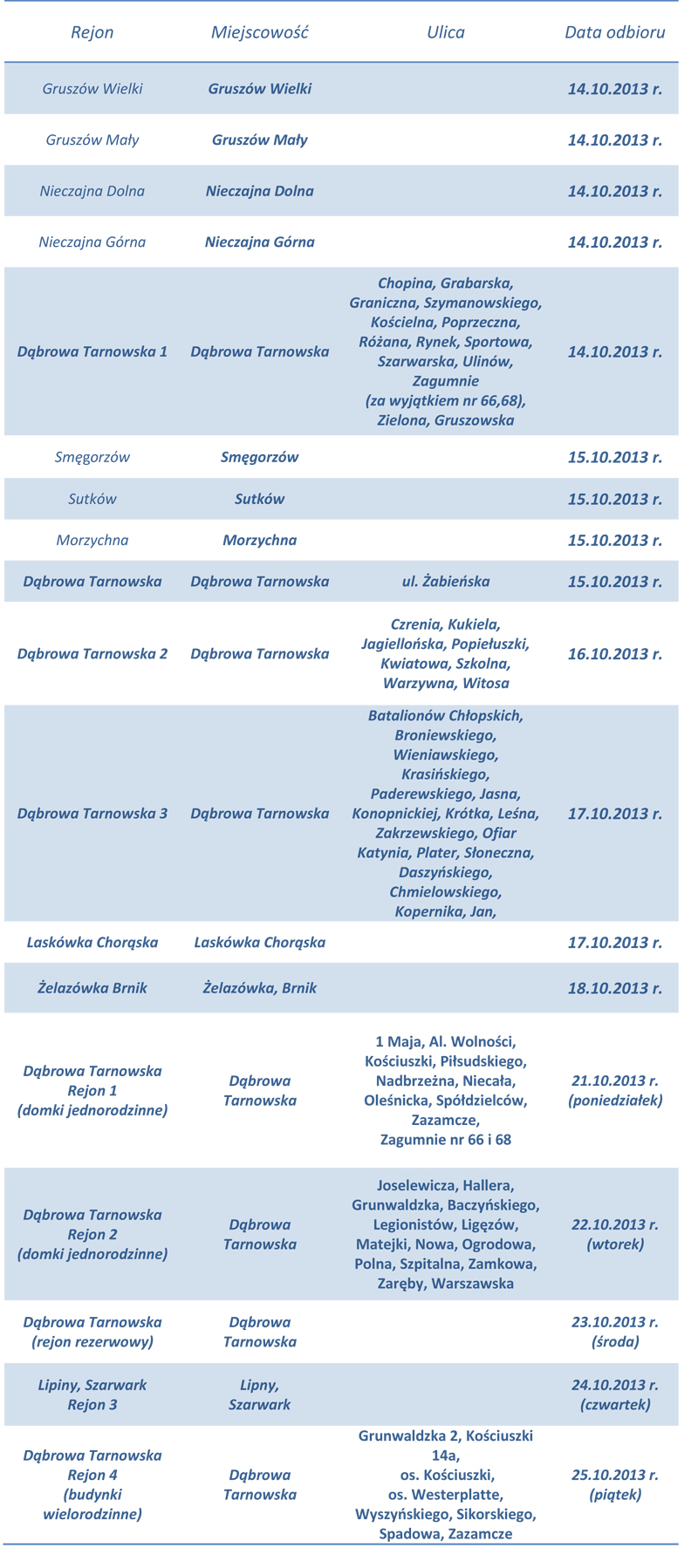 Zbiórka przeprowadzona będzie zgodnie z poniższym harmonogramem.