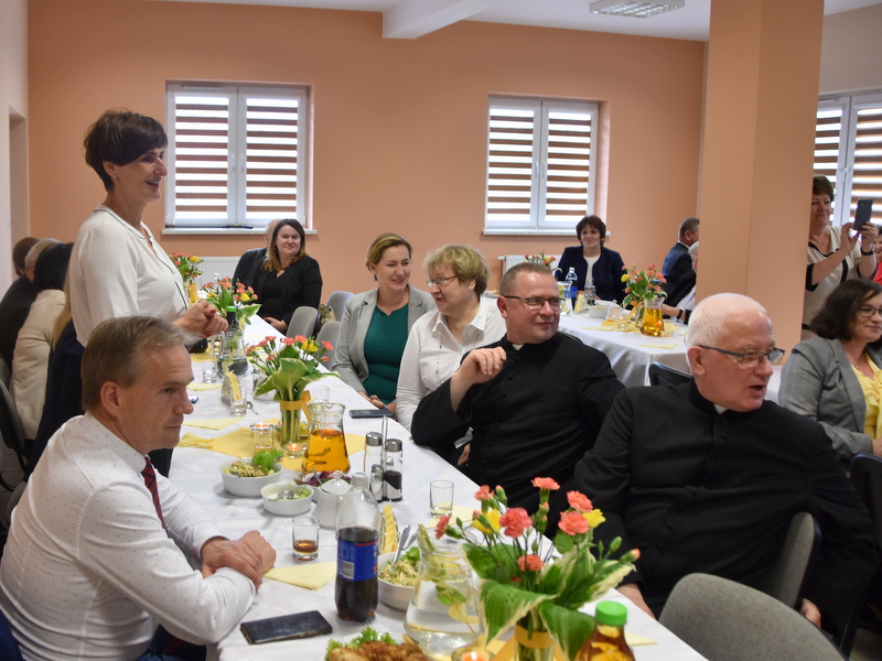 Program rozrywkowo-artystyczny przygotowany przez uczniów miejscowej szkoły bardzo spodobał się zebranym, którzy oglądali go wśród wybuchów wesołości. Po części oficjalnej uczniowie wraz z gronem pedagogicznym kontynuowali świętowanie przy poczęstunku pierwotnie zaplanowanym w formie pikniku. Goście udali się do Centrum Kulturalno-Społecznego, gdzie także przygotowano poczęstunek oraz wykwintny tort w kształcie placu rekreacyjnego.