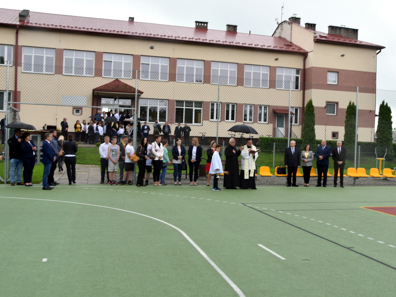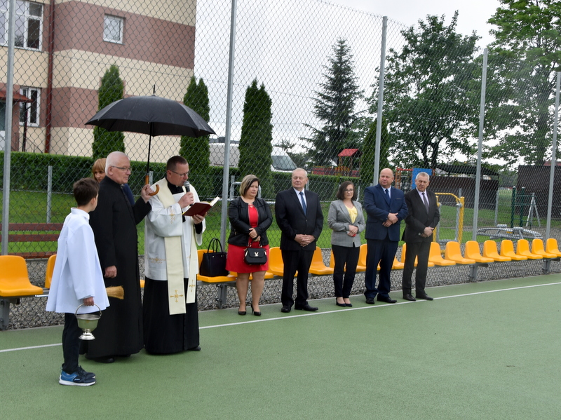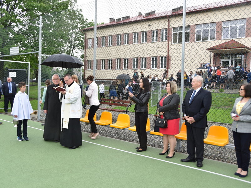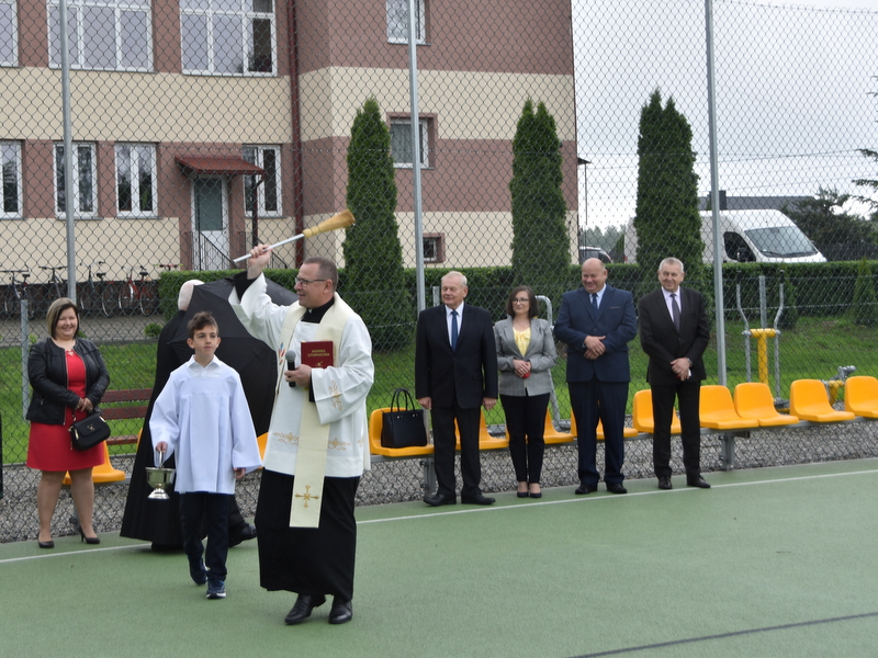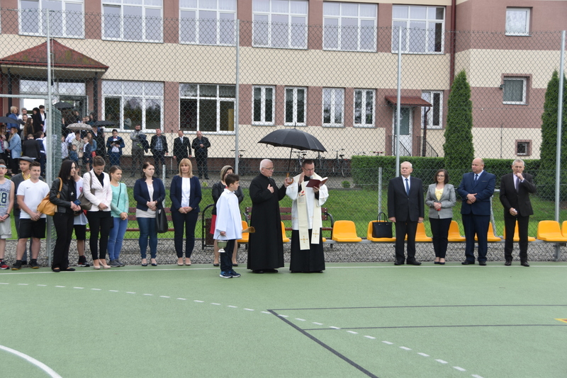 Uroczystość otwarcia prowadziła Dyrektor Szkoły Podstawowej w Laskówce Chorąskiej Teresa Dąbrowa wraz z przedstawicielem uczniów. Wśród obecnych gości byli: Proboszcz Parafii Oczyszczenia NMP w Odporyszowie Janusz Oćwieja, który dokonał poświecenia placu, Sekretarz Gminy Dąbrowa Tarnowska Stanisław Ryczek, Skarbnik Gminy Małgorzata Bąba, sołtys wsi Laskówka Chorąska, a zarazem Wiceprzewodniczący Rady Miejskiej w Dąbrowie Tarnowskiej Jacek Światek, Radny Powiatu Dąbrowskiego i były Burmistrz Dabrowy Tarnowskiej w latach 1994-2014 Stanisław Początek, Prezes Stowarzyszenia Przyjaciół Szkoły w Laskówce Chorąskiej Anna Jarmuła-Patoń, nauczyciele szkoły, katecheci członkowie rady rodziców, osoby związane ze Stowarzyszeniem Przyjaciół Szkoły w Laskówce Chorąskiej, sponsorzy i uczniowie. Z powodu sytuacji alarmu powodziowego w gminie Burmistrz Dąbrowy Tarnowskiej Krzysztof Kaczmarski nie mógł uczestniczyć w otwarciu.
