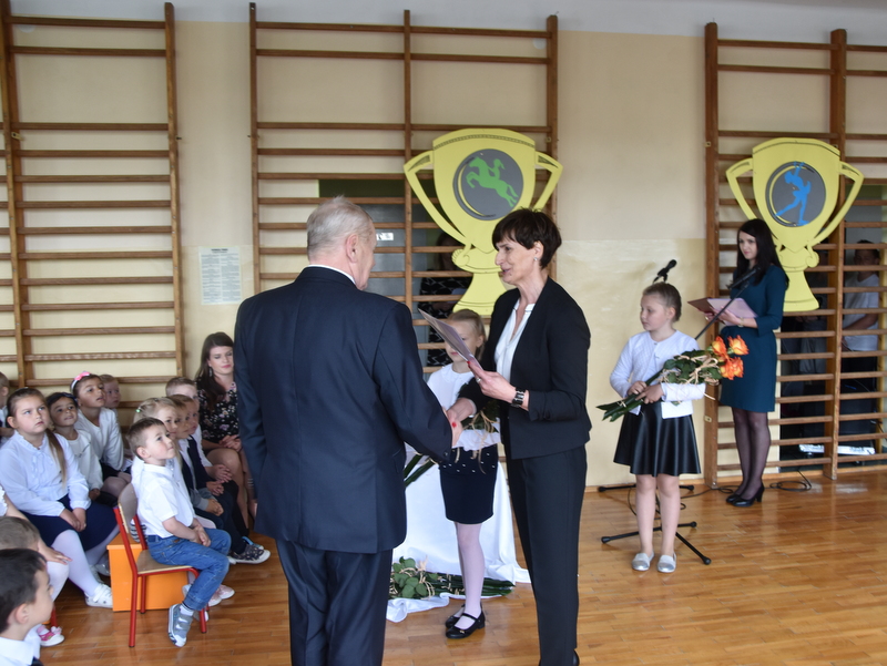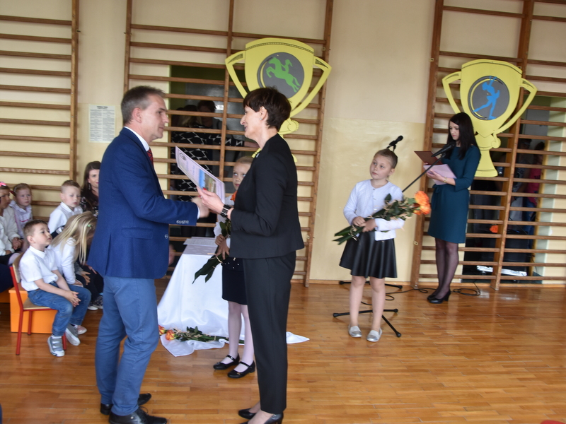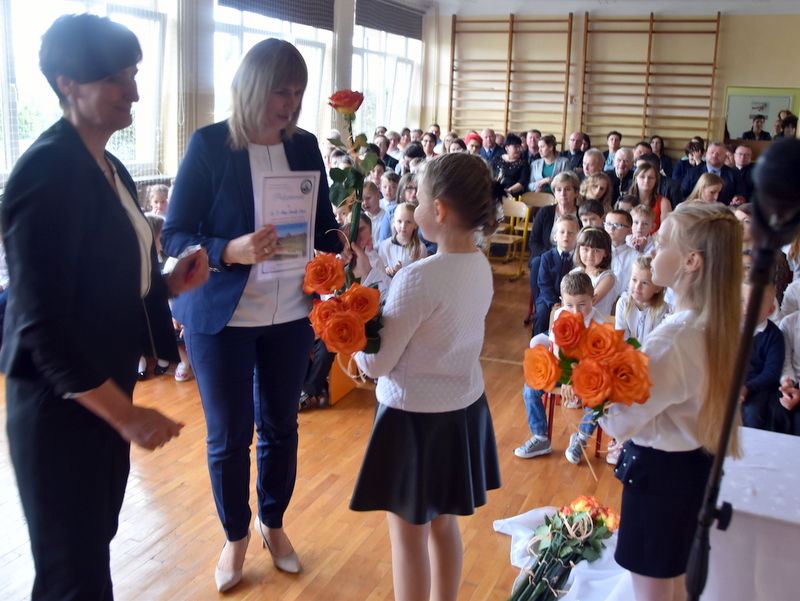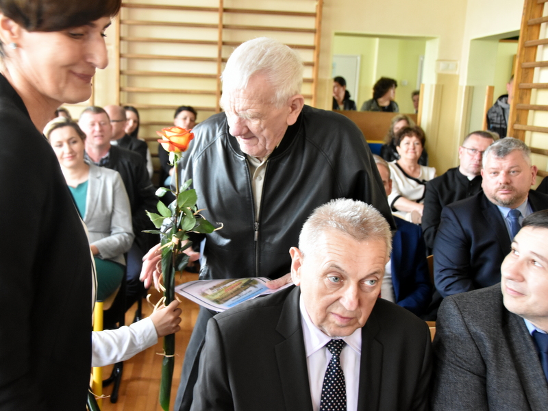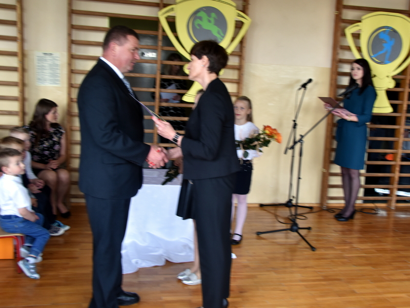 W dalszej części uroczystości dyrektor szkoły podziękowała wszystkim osobom zaangażowanym w modernizację obiektu wręczając im pamiątkowe dyplomy oraz przepiękne róże. Sekretarz Gminy Stanisław Ryczek w imieniu przedstawił zebranym informacje na temat zrealizowanego projektu i jego finansowanie. Podkreślił rolę Stowarzyszenia Przyjaciół Szkoły w Laskówce Chorąskiej w realizacji projektu, a także wręczył w imieniu Burmistrza Krzysztofa Kaczmarskiego listy gratulacyjne. Otrzymali je: prezes stowarzyszenia Anna Jarmuła-Patoń, dyrektor szkoły Teresa Dąbrowa, sołtys Jacek Świątek, który w imieniu beneficjentów projektu podziękował wszystkim osobom w niego zaangażowanym w tym Sekretarzowi Stanisławowi Ryczkowi, pracownikom Referatu Inwestycji i Zamówień Urzędu Miejskiego z kierownikiem Witoldem Reczkiem Oraz Annie Witowskiej z Referatu Promocji, Kultury i Informatyzacji. Wystąpił także były gospodarz Dąbrowy Tarnowskiej, Radny Powiatu Dąbrowskiego Stanisław Początek.