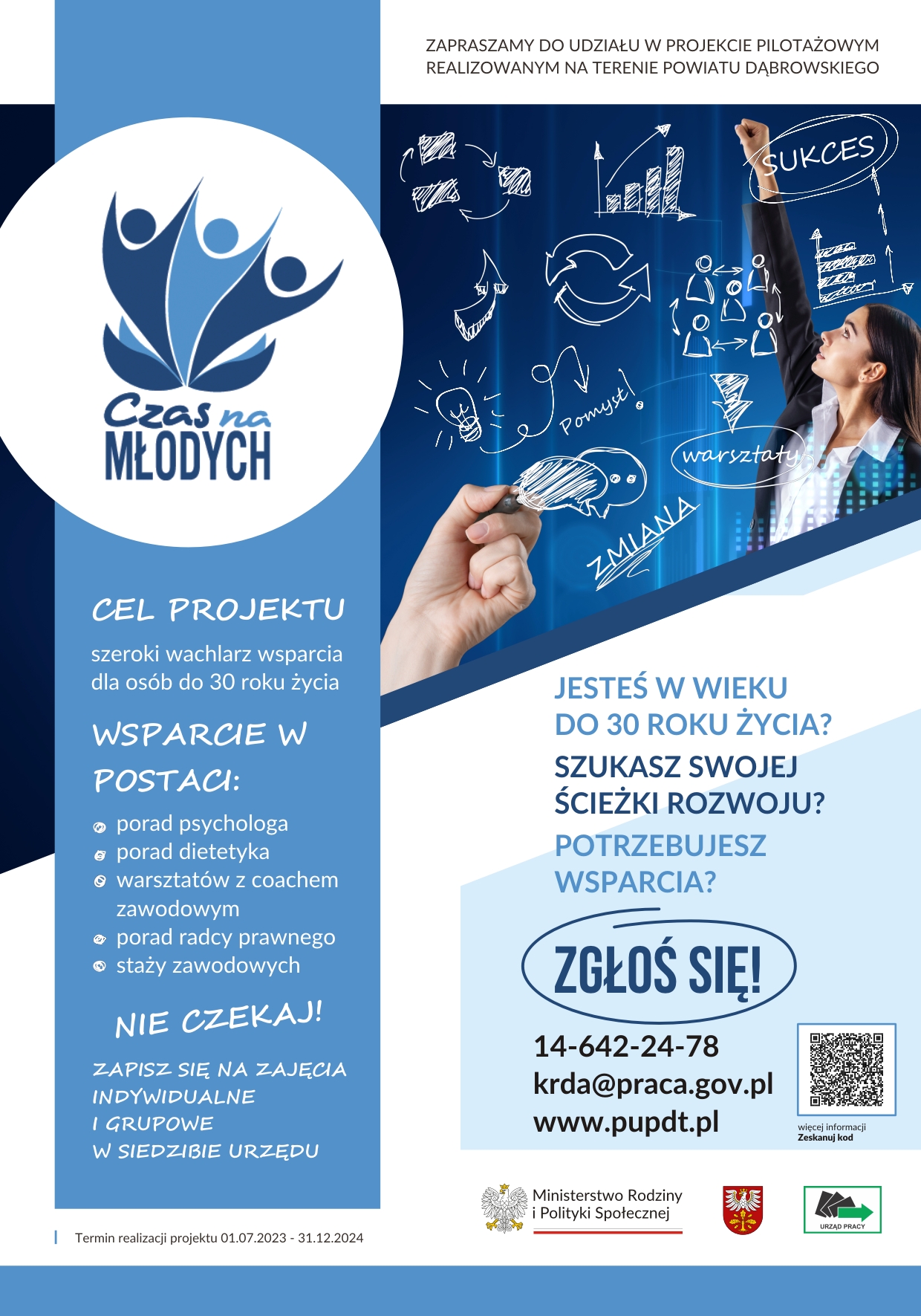 Wsparcie finansowane ze środków Funduszu Pracy w ramach projektu pilotażowego „Czas na Młodych – punkty doradztwa dla młodzieży"
