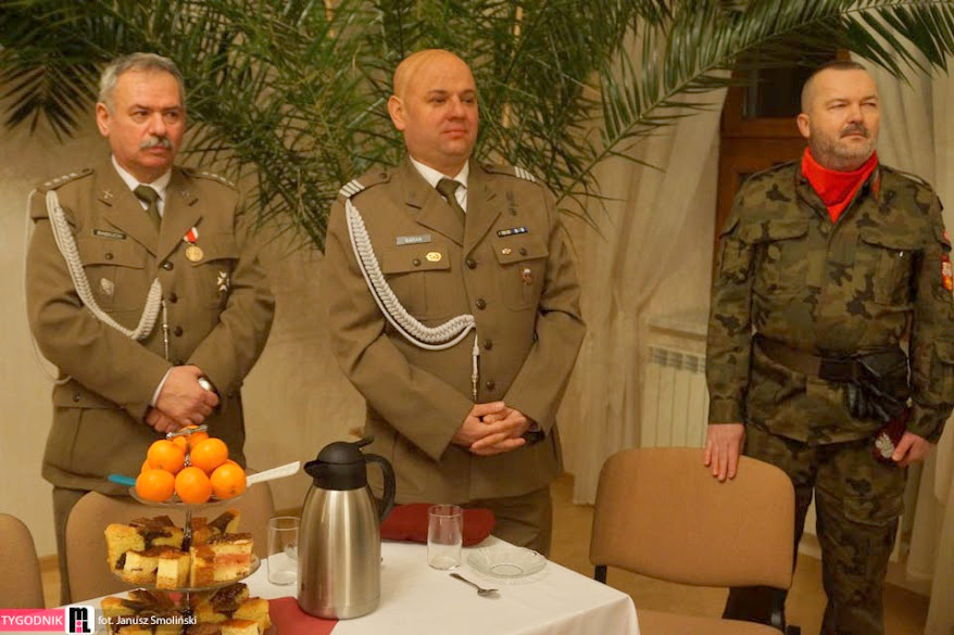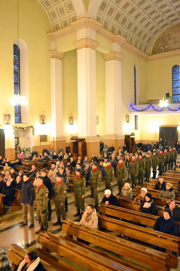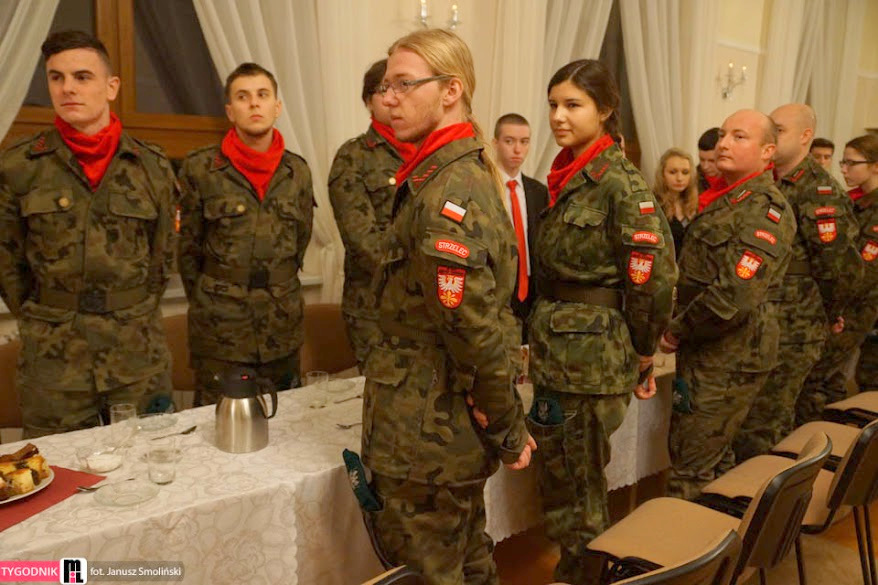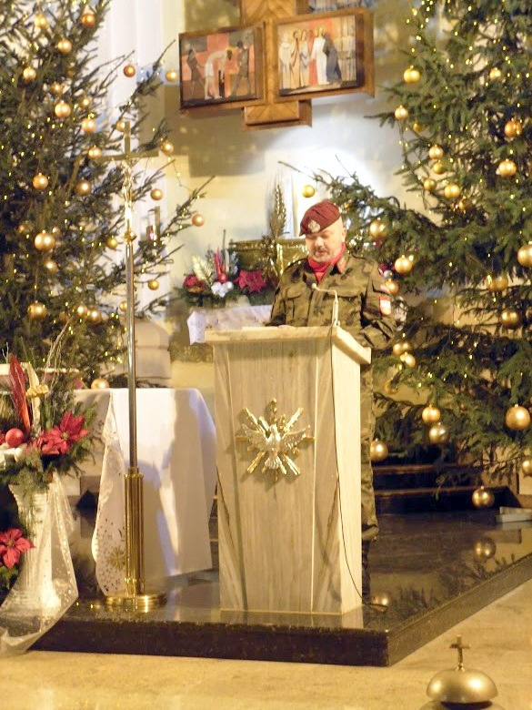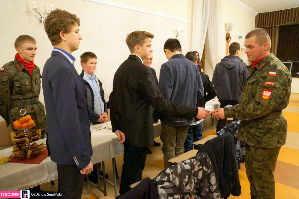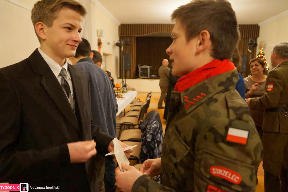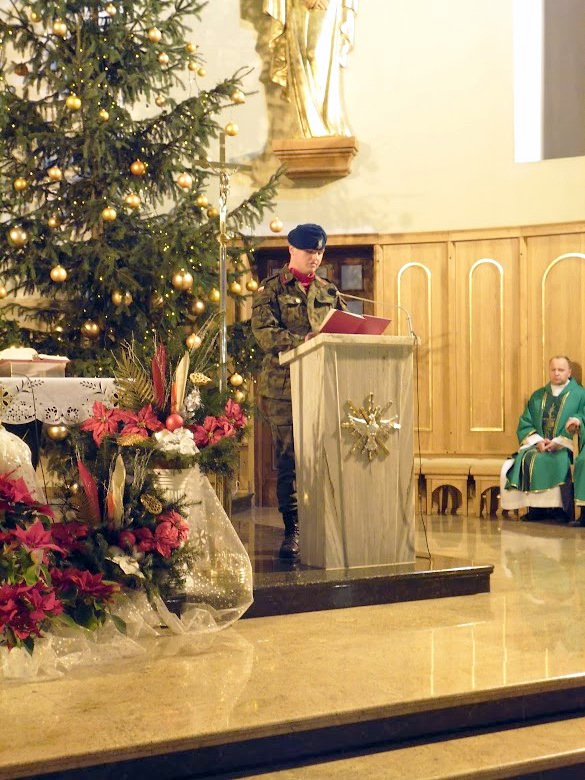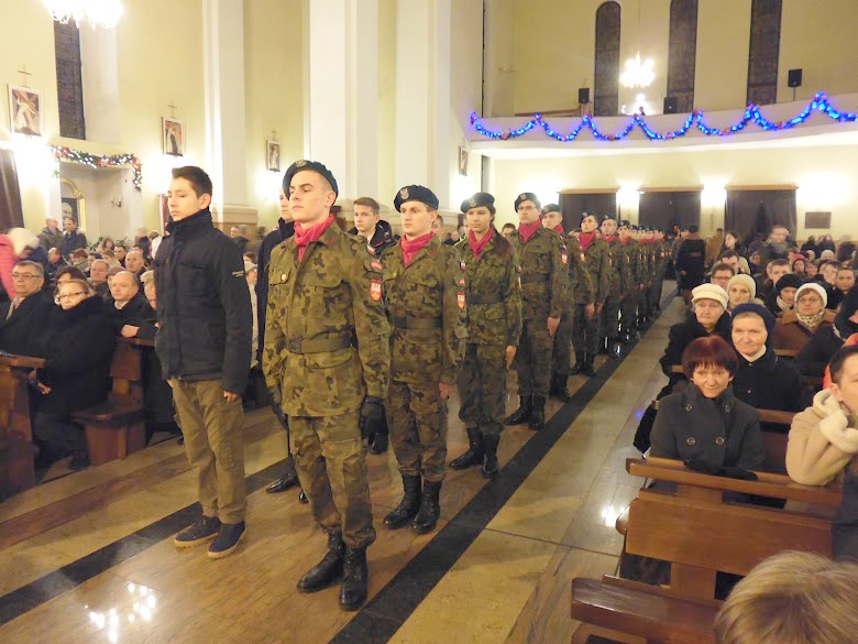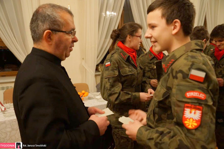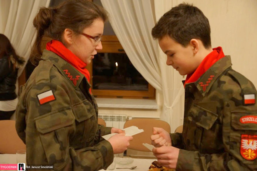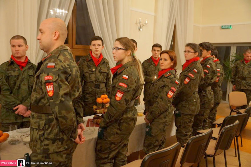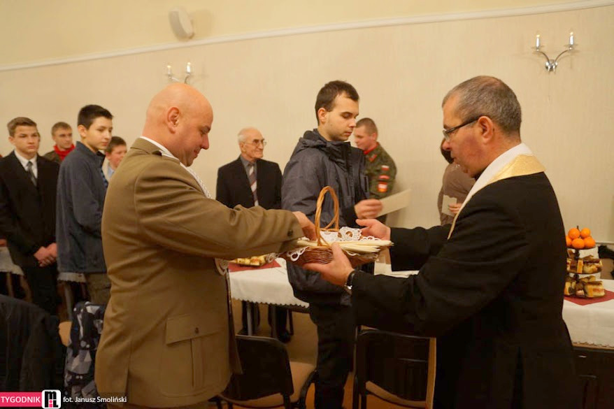 W niedzielę 18 stycznia br, Mszą Św. pod przewodnictwem ks. proboszcza, kapelana Jednostki Strzeleckiej JS 3059 Dąbrowa Tarnowska – ks. mgr. Stanisława Cyrana, dąbrowscy Strzelcy rozpoczęli swoje spotkanie opłatkowe. Mszę Św. uświetniła kompania strzelców oraz kandydatów na strzelców w mundurach reprezentacyjnych wraz z pocztem sztandarowym. Podczas kazania ks. Cyran - kapelan JS 3059 przypomniał wartość słów które Strzelcy wypowiadali podczas przysięgi oraz podniósł wartość służby dla Ojczyzny. Po mszy świętej Strzelcy oraz zaproszeni goście udali się do auli domu parafialnego w którym odbył się uroczysty opłatek Strzelecki. Na spotkaniu Opłatkowym zagościli m. in.: Krzysztof Kaczmarski – Burmistrz Dąbrowy Tarnowskiej, kpt. rez. mgr. Inż. Zbigniew Babiuch – sekretarz Zarządu Rejonowego Związku Żołnierzy WP w Tarnowie, plut. rez. Rafał Baran - uczestnik III oraz V zmiany PKW Afganistan - żołnierz 6 Batalionu Powietrzno - Desantowego (Batalion Dowodzenia), Mieczysław Śliski – przedstawiciel, członek Stowarzyszenia Rodzin Ofiar Katynia w Tarnowie - mieszkaniec Dąbrowy Tarnowskiej oraz por w st. spocz. mgr. inż. Józef Stalmach - Dowódca JS 3059. Podczas uroczystości Strzelcy oraz zaproszeni goście składali sobie życzenia na Nowy 2015 rok, podczas spotkania panowała rodzinna atmosfera.