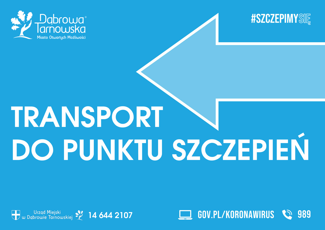 Przypominamy, że osoby niepełnosprawne i starsze, które mieszkają samotnie i mają trudności z zapewnieniem sobie transportu mogą liczyć na pomoc ze strony gminy w zakresie dowozu na szczepienie. Każda gmina w ramach realizacji zadania własnego zapewnia bezpłatny dowóz takich osób do punktu szczepień. Wojewoda Małopolski będzie refinansował gminom transport w wysokości 80% stawki za przewóz każdej osoby. Samorządy stworzyły specjalną infolinię do koordynacji transportu i pomocy mieszkańcom. W Gminie Dąbrowa Tarnowska na koordynatora realizacji przewozów, wyznaczono Annę Jastrzębiec-Witowską, dostępną pod numerem telefonu 14 644 2107 w godzinach pracy Urzędu Miejskiego w Dąbrowie Tarnowskiej (w poniedziałki od 8:00 do 16:00 i od wtorku do piątku od 7:30 do 15:30). Uwaga: Należy podkreślić, że koordynator gminny nie ma możliwości ustalania terminu szczepień, ale odpowiada za organizację transportu, gdy osoby potrzebujące już mają ustalony termin szczepienia.
