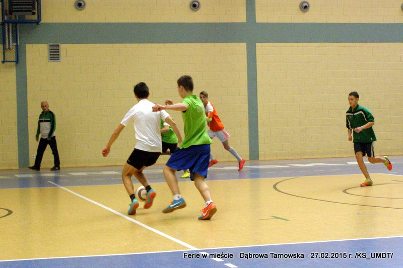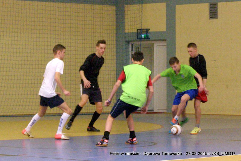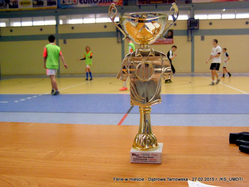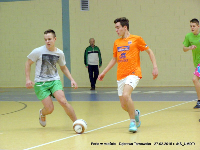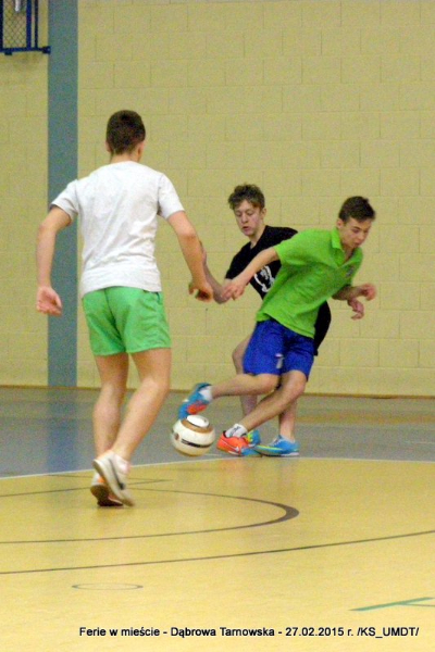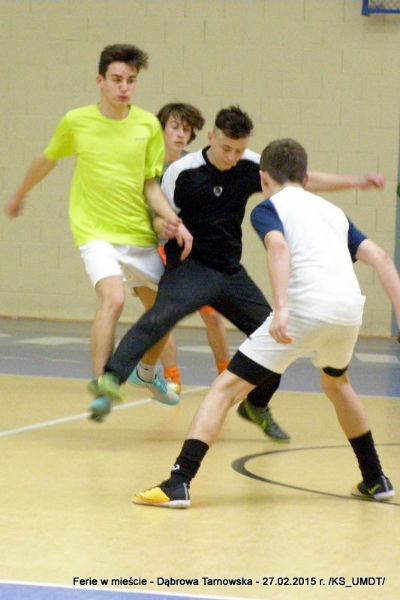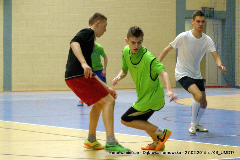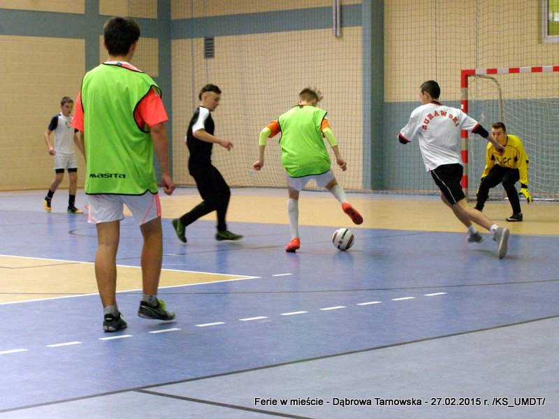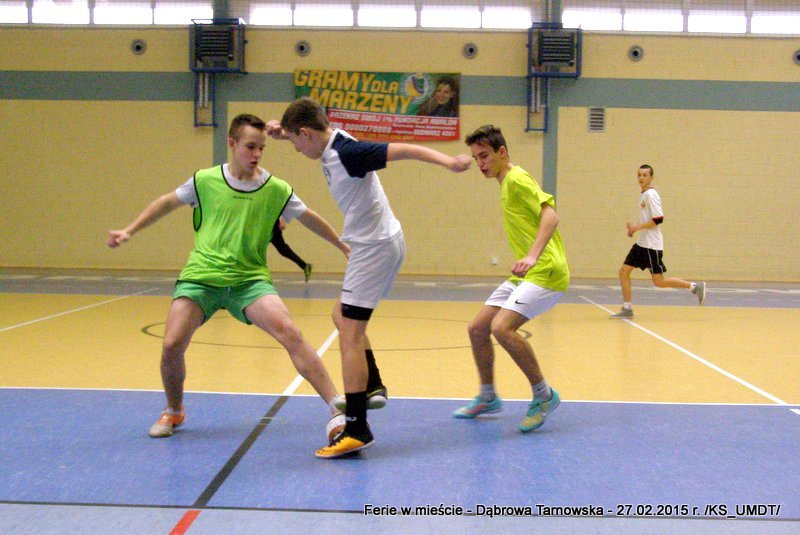 Wszystko co dobre szybko się kończy. Niestety ferie zimowe 2015 dobiegły już do mety. W piątek 27 lutego na Hali Sportowej im Agaty Mróz -Olszewskiej przeprowadzony został ostatni turniej w ramach sportowych ferii w mieście. Sześć drużyn, uczniów szkół gimnazjalnych zgłosiło chęć do rywalizacji o tytuł mistrza w Halowej Piłce Nożnej. Drużyny podzielone zostały na dwie grupy w których mecze rozegrane zostały w systemie każdy z każdym, w czasie 1 x 10 min.