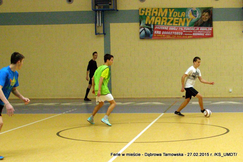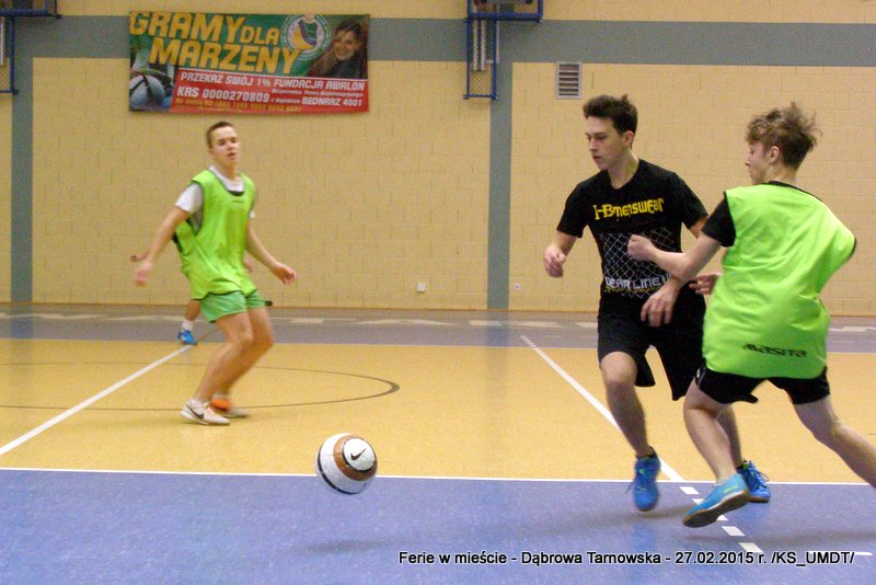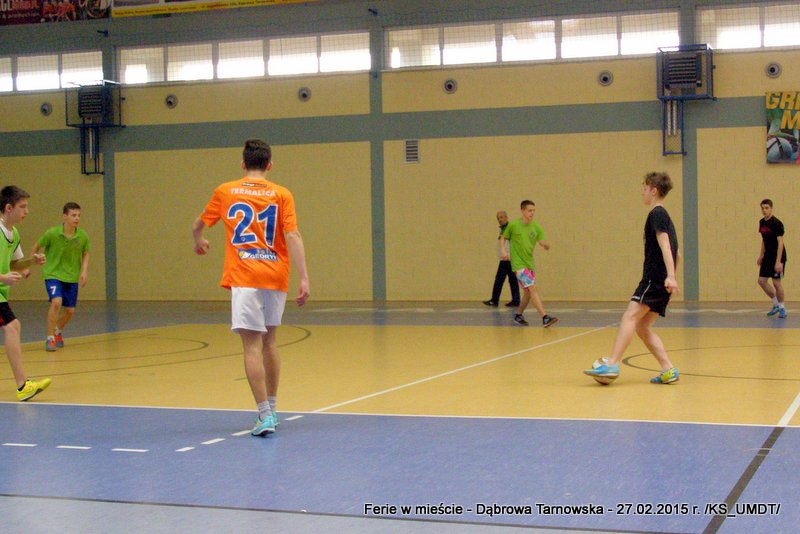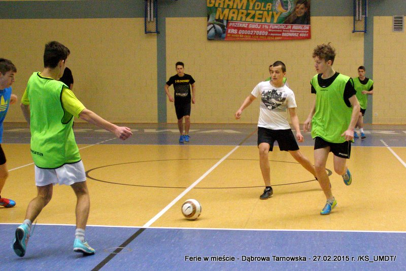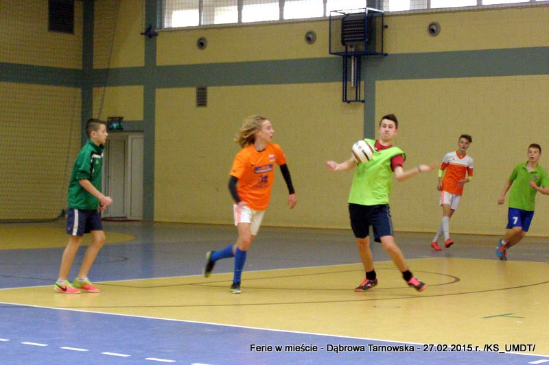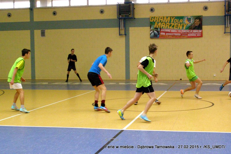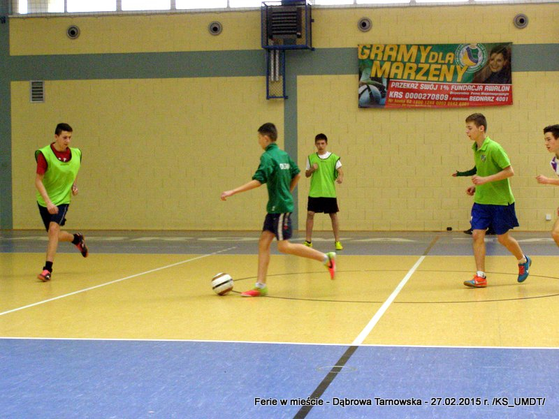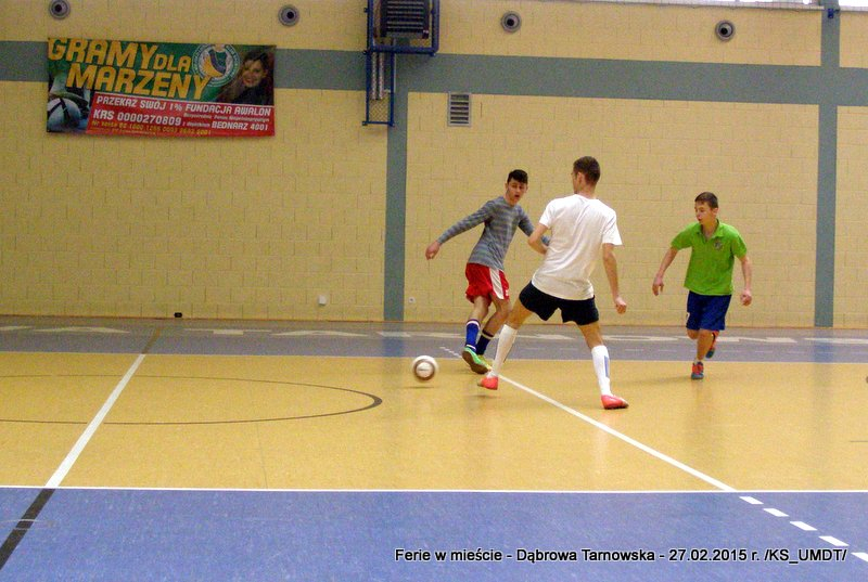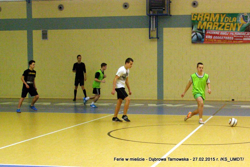 Wszystko co dobre szybko się kończy. Niestety ferie zimowe 2015 dobiegły już do mety. W piątek 27 lutego na Hali Sportowej im Agaty Mróz -Olszewskiej przeprowadzony został ostatni turniej w ramach sportowych ferii w mieście. Sześć drużyn, uczniów szkół gimnazjalnych zgłosiło chęć do rywalizacji o tytuł mistrza w Halowej Piłce Nożnej. Drużyny podzielone zostały na dwie grupy w których mecze rozegrane zostały w systemie każdy z każdym, w czasie 1 x 10 min.