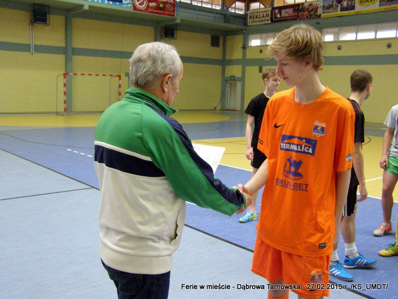 Po zakończonym turnieju, sędzia Pan Jan Pisarski wręczył drużynom z miejsc I -III pamiątkowe dyplomy, a zwycięska drużyna otrzymała puchar Burmistrza Dąbrowy Tarnowskiej.