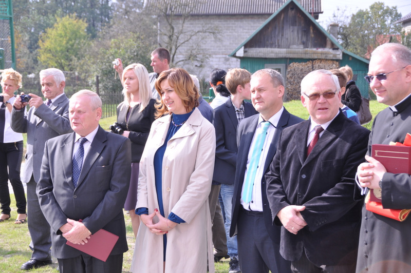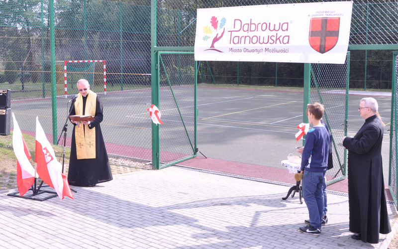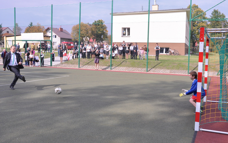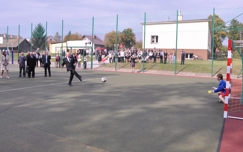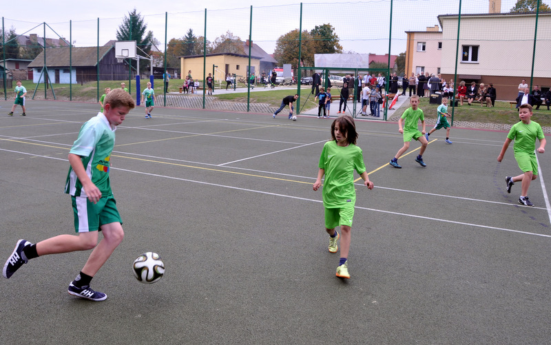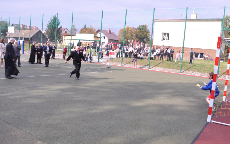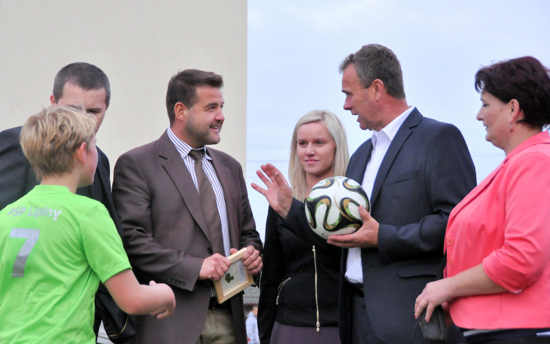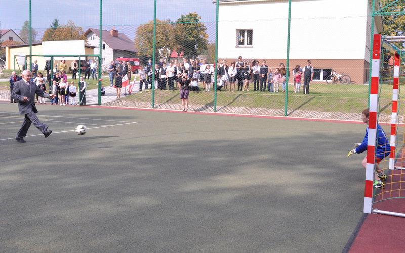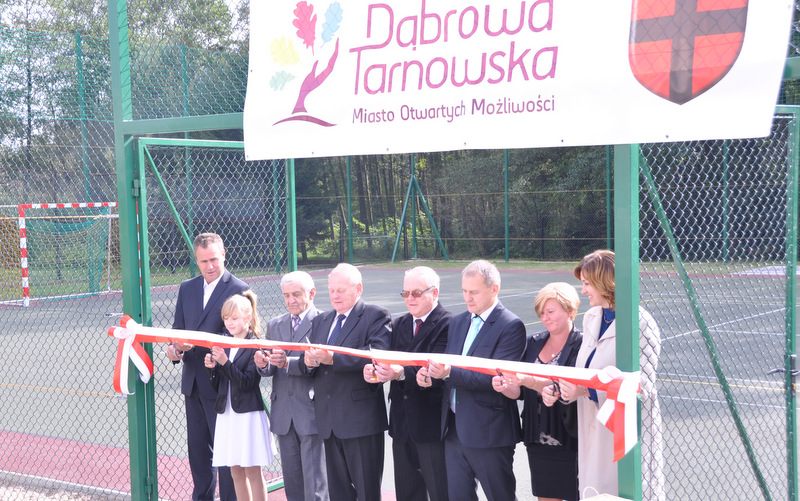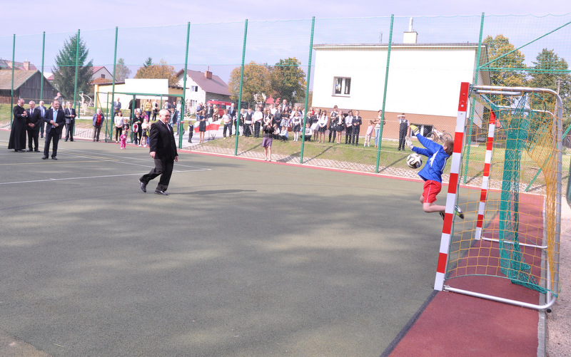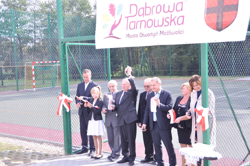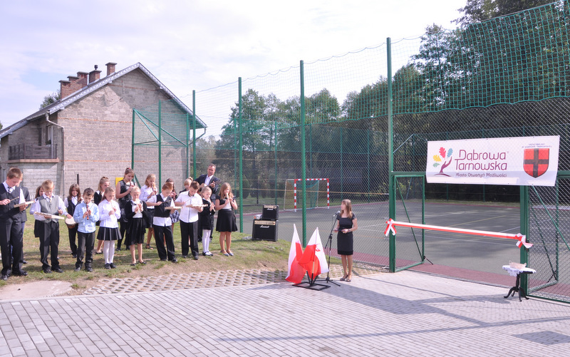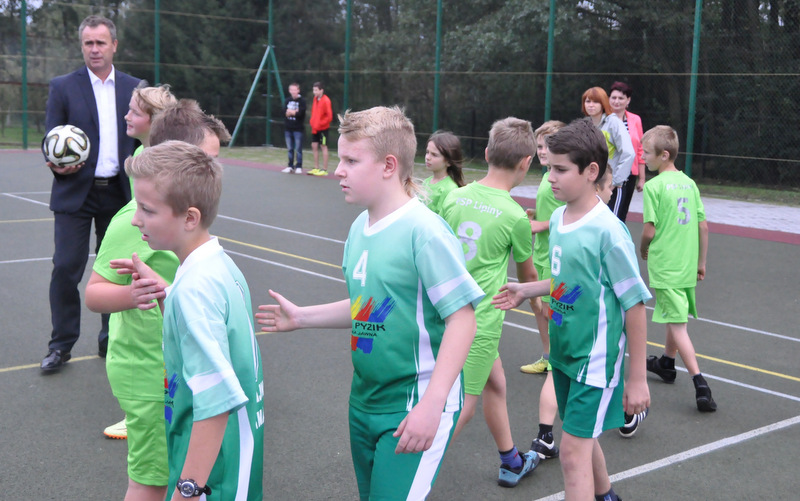 Oficjalna część otwarcia rozpoczęła się od odśpiewania hymnu narodowego, następnie do przecięcia wstęgi poproszono: Stanisława Początka Burmistrza Gminy Dąbrowa Tarnowska, Agatę Leżoń dyrektora Publicznej Szkoły Podstawowej w Lipinach, Władysława Knutelskiego przewodniczącego Rady Miejskiej w Dąbrowie Tarnowskiej, Krzysztofa Wilka radnego Rady Miejskiej w Dąbrowie Tarnowskiej, Jerzego Mikusa  prezesa Stowarzyszenia „Nasze Jutro”, nauczyciela wychowania fizycznego, Tadeusza Krawczyka sołtysa wsi Lipiny, Elżbietę Płaczek Przewodniczącą Rady Rodziców, uczennicę Aleksandrę Dobosz  przewodniczącą Samorządu Uczniowskiego. Następnie akt poświęcenia boiska dokonali: ksiądz proboszcz Bogdan Stanisław Kwiecień i ksiądz katecheta Przemysław Budnik. Po czym głos zabrał ksiądz proboszcz, gratulując mieszkańcom pięknego boiska. Przed oddaniem kompleksu boisk symboliczne strzały na bramkę oddali: Burmistrz Stanisław Początek, dyrektor szkoły Agata Leżoń, przewodniczący Władysław Knutelski, radny Krzysztof Wilk, sołtys Tadeusz Krawczyk, ksiądz Przemysław Budnik. Drugą częścią uroczystości było przejście do  budynku szkoły, gdzie pani dyrektor Agata Leżoń przywitała przedstawicieli władz, dyrektorów szkół oraz znamienitych gości, którzy uświetnili swoją obecnością ten ważny dla nas dzień. W kolejnym punkcie przemówienia pani dyrektor wyraziła ogromną wdzięczność wszystkim osobom, które przyczyniły się do powstania tego obiektu. Stwierdziła również, że  uczestnicząc w uroczystości jesteśmy świadkami otwarcia nowego, znacznie lepszego rozdziału w naszej historii nie tylko naszej szkoły ale i całej społeczności Lipin. Pani dyrektor przypomniała jak bardzo bogate tradycje sportowe i duże sukcesy ma nasza szkoła a więc powstanie tego obiektu będzie wspaniale służyć zarówno uczniom szkoły, młodzieży i dorosłym. Kończąc przemówienie serdecznie podziękowała wszystkim  nauczycielom, którzy włączyli się aktywnie  w przygotowanie tej uroczystości, pracownikom obsługi  za czuwaniem nad porządkiem w szkole oraz szczególne podziękowania dla rodziców, druhów z młodzieżówki OSP oraz naszych absolwentów i beneficjentów tego przedsięwzięcia. Następnie wystąpił Burmistrz Dąbrowy Tarnowskiej Stanisław Początek, podkreślając w swoim wystąpieniu że boisko wielofunkcyjne jest wynikiem planowanych przemian zmierzających do ciągłego unowocześniania placówek oświatowych oraz podnoszenia standardów wychowania i kształcenia. Złożył także podziękowania i życzenia pani dyrektor i całemu gronu pedagogicznemu. Po zakończeniu części oficjalnej nastąpiła część artystyczna w wykonaniu uczniów naszej szkoły przygotowaną przez panią Annę Augustyńską - Osak i pana Jerzego Mikusa nauczycieli PSP Lipiny przy pięknie wykonanej dekoracji przez panią Paulinę Bogula - Motykę. Uroczystości towarzyszył inauguracyjny turniej piłki nożnej, w której zmierzyły się drużyny z Publicznej Szkoły Podstawowej z Nieczajnej Górnej i Publicznej Szkoły Podstawowej z Lipin oraz OSP Lipiny i Absolwenci i Przyjaciele, drużyny wspierane gorącym dopingiem, wykazały duży zapał sportowy. Na zakończenie pani dyrektor Agata Leżoń wręczyła Puchary dyrektora szkoły za pierwsze miejsce Publicznej Szkole Podstawowej z Nieczajnej Górnej i Absolwentom i Przyjaciołom  oraz za drugie miejsce  Publicznej Szkole Podstawowej z Lipin i OSP Lipiny.