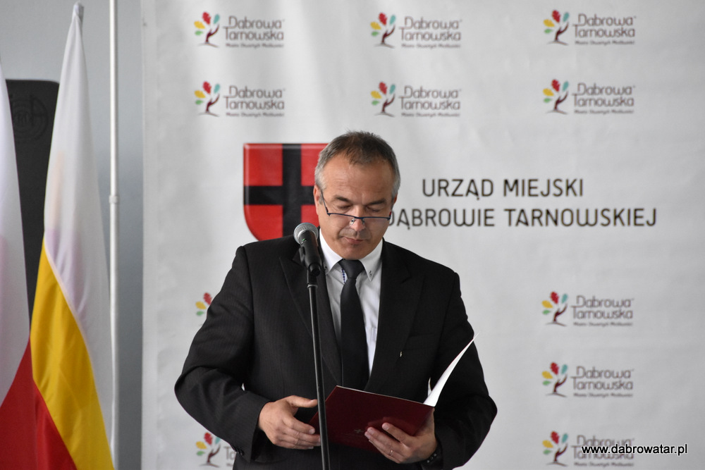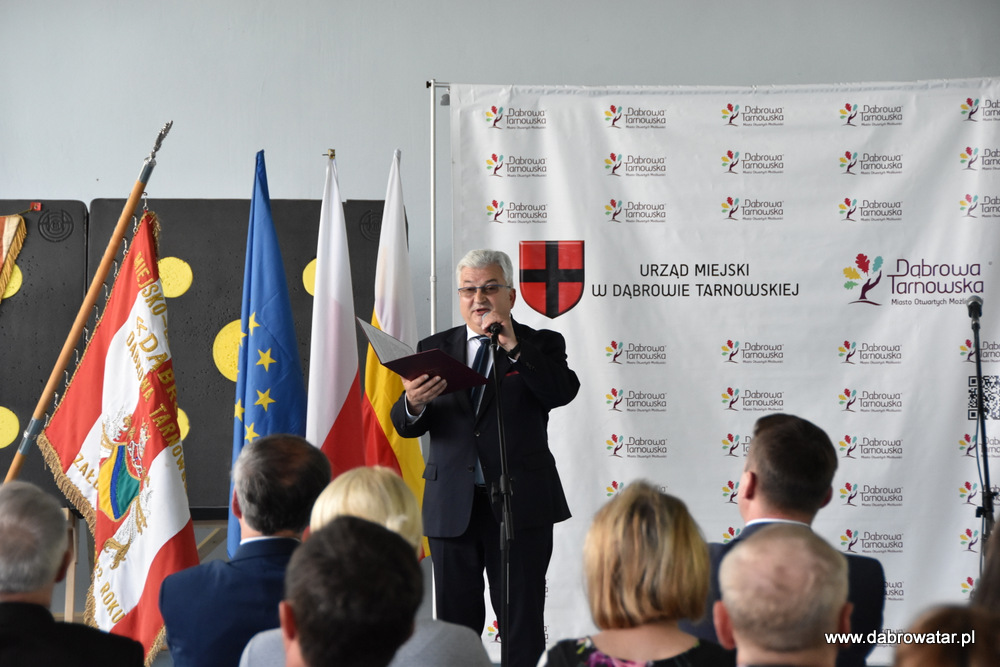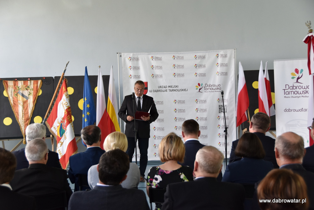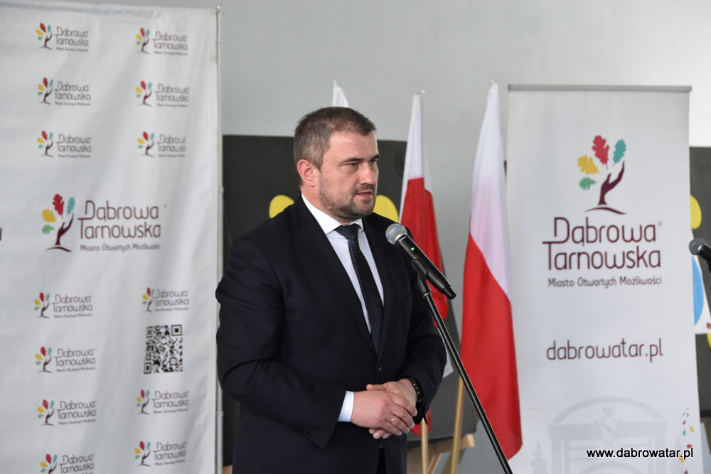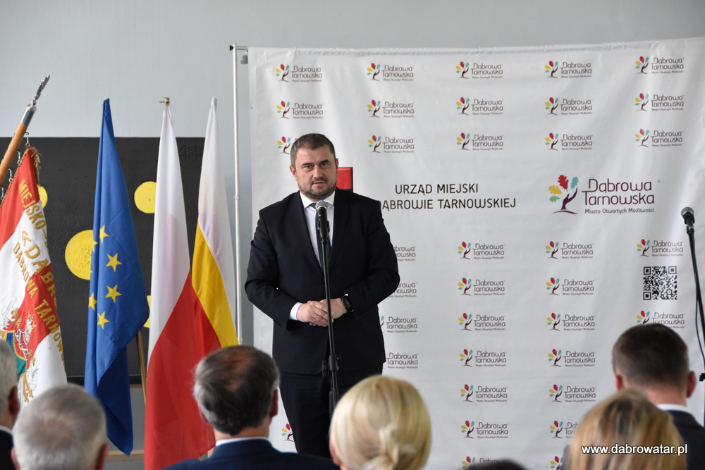 W swoim przemówieniu Burmistrz Dąbrowy Tarnowskiej Krzysztof Kaczmarski przedstawił zebranym zakres inwestycji i omówił charakter przebudowy obiektu oraz korzyści ekologiczne wynikające z jego termomodernizacji. Podziękował wszystkim zaangażowanym w tą realizację: